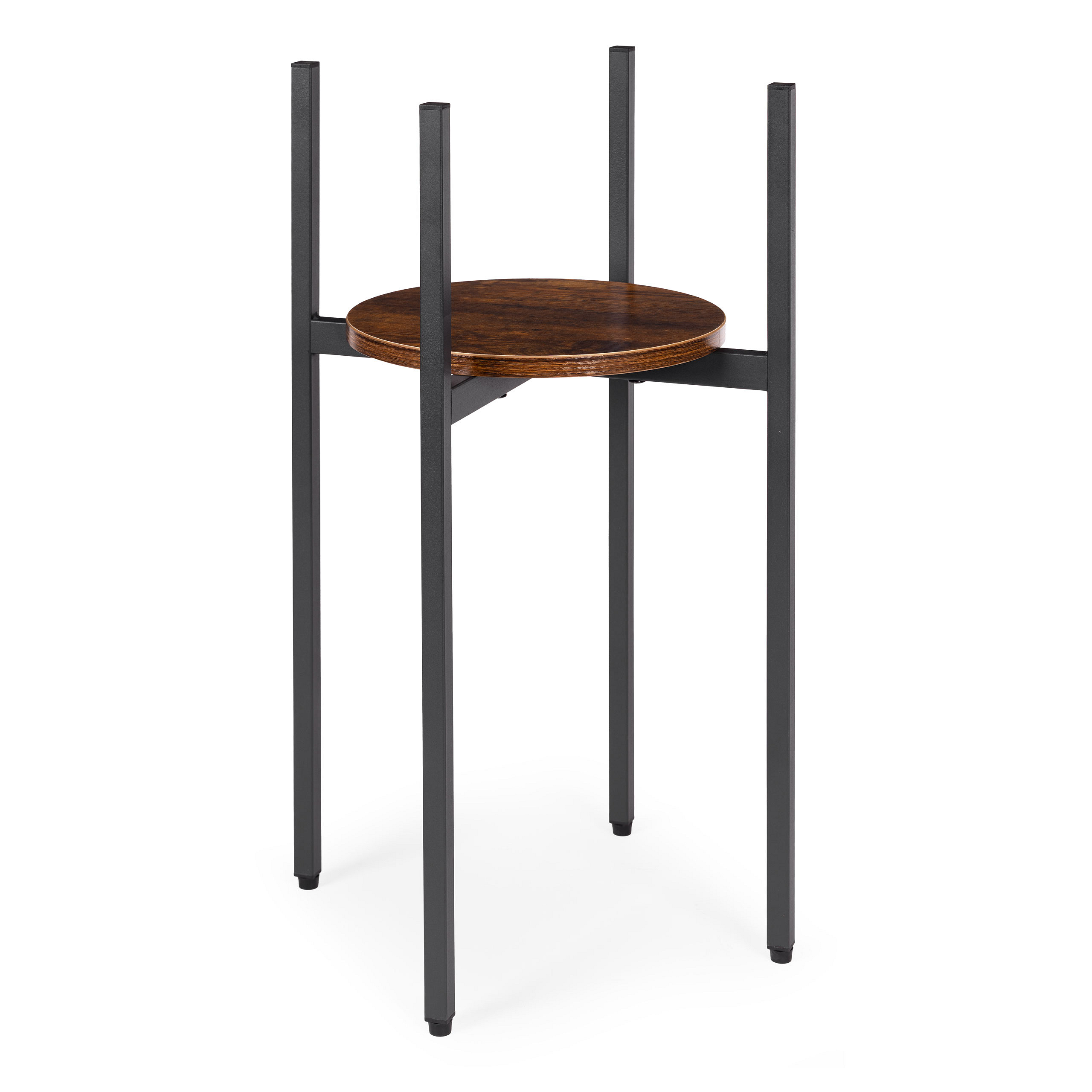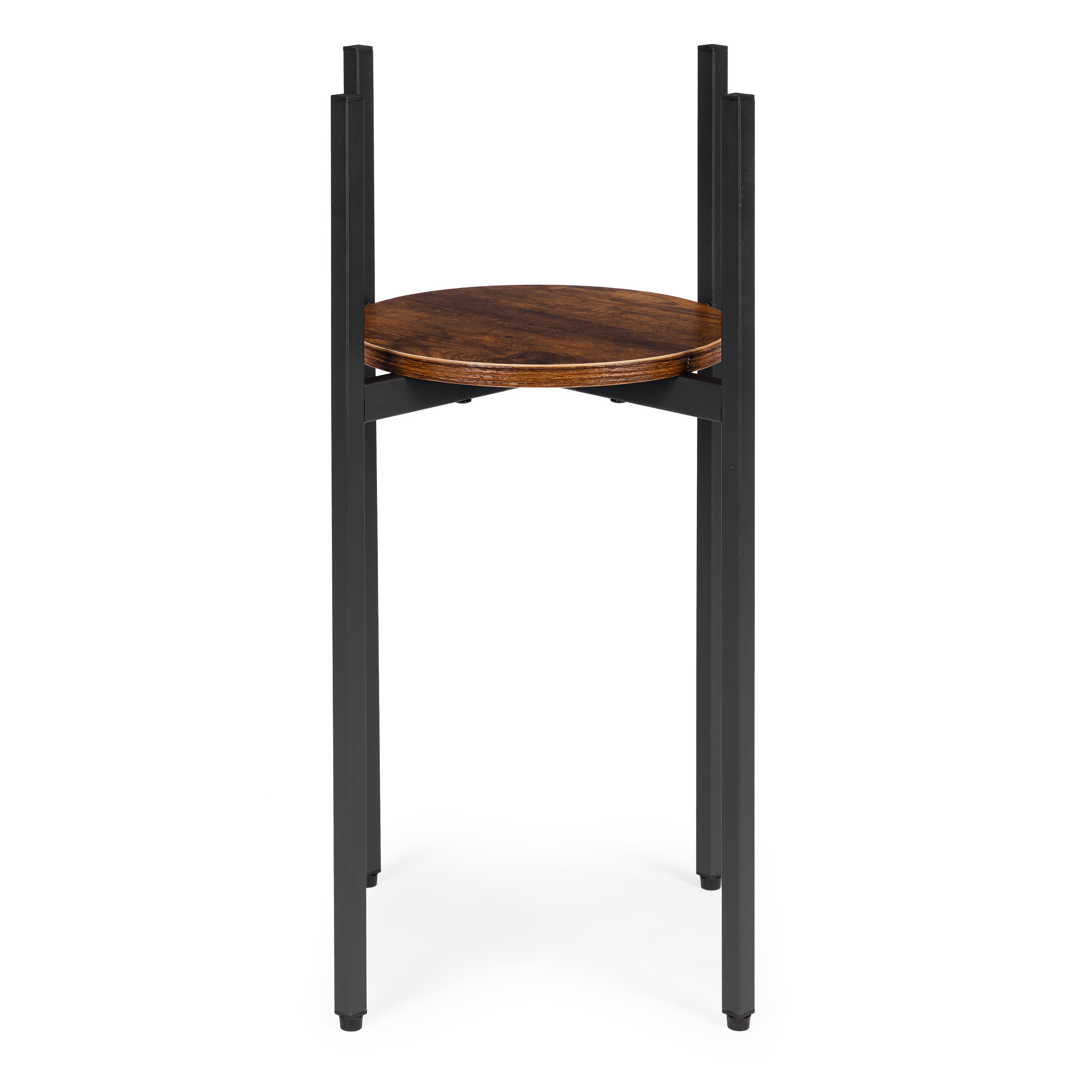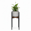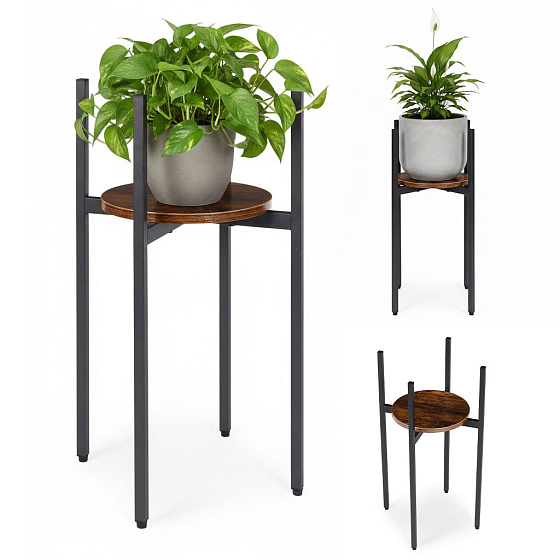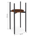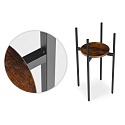 The plant stand is made of powder-coated steel, ensuring resistance to corrosion and mechanical damage. The chipboard shelf is finished in a natural wood-like color, highlighting the decorative, loft-style character of the furniture.