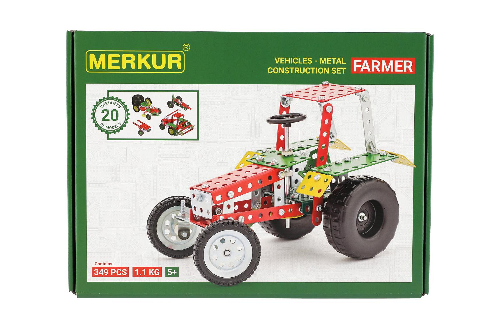Popis Stavebnice MERKUR Farmer Set 20 modelů 341ks v krabici 36x27x5,5cm