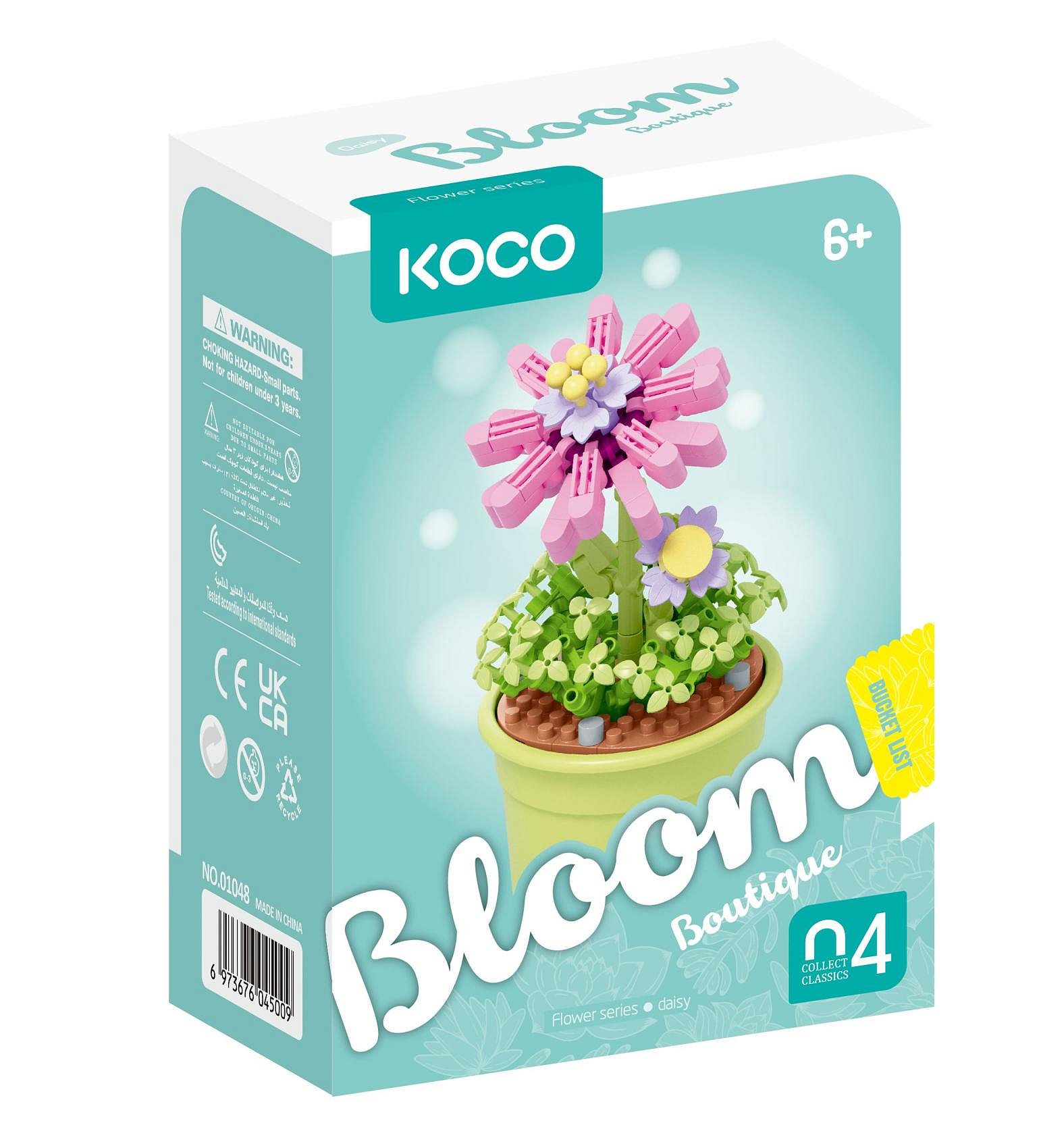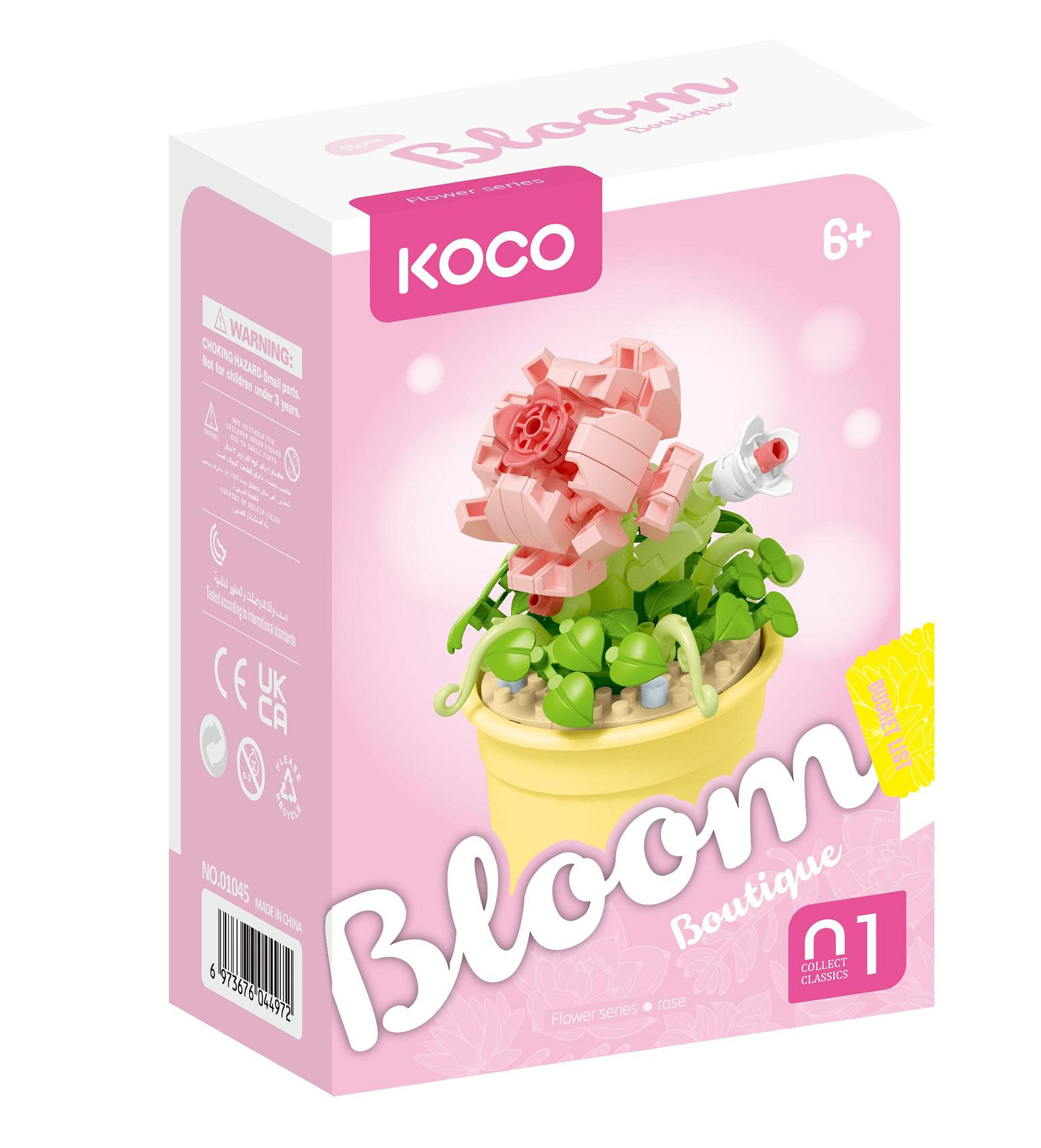 Stavebnice mini KOCO Květina v květináči plast 6 druhů v krabičce 10x14x6cm 6ks v boxu