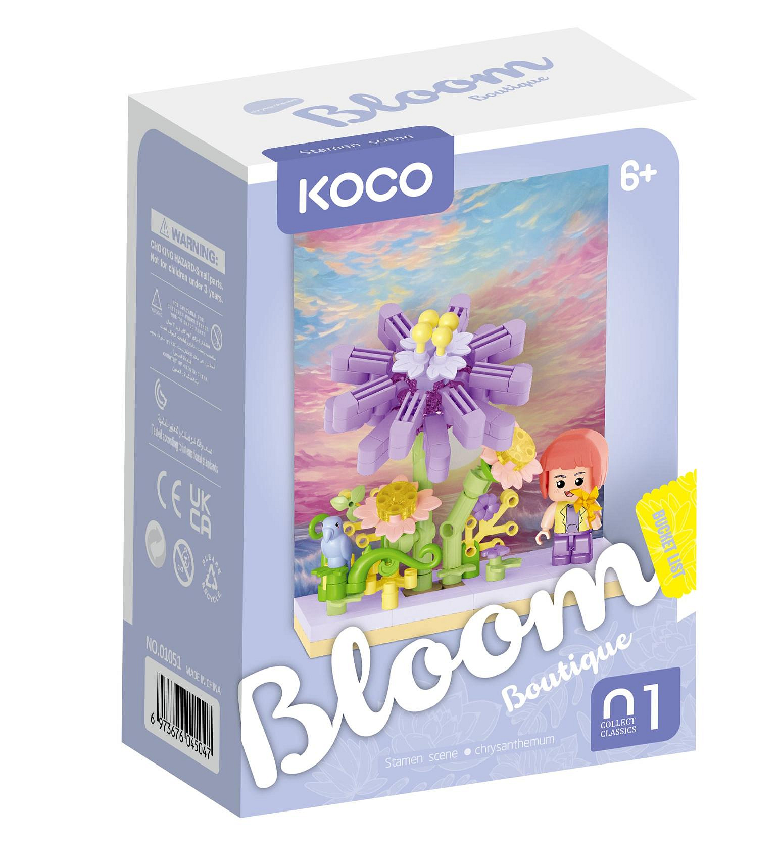 Stavebnice mini KOCO Květinová scenérie plast 6 druhů v krabičce 10x14x6cm 6ks v boxu
