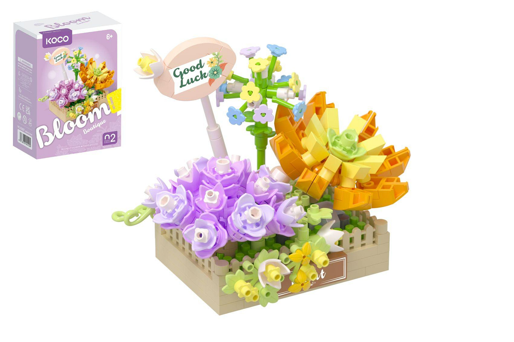 Stavebnice mini KOCO Květinové aranžmá sukulentů plast 295 dílků v krabičce 11x15x6cm