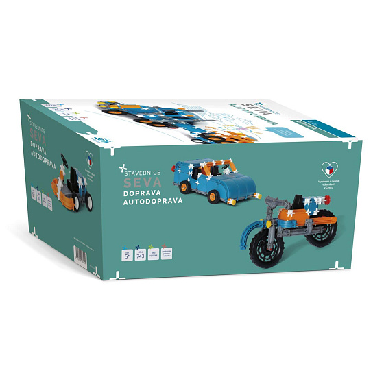 Stavebnice SEVA DOPRAVA - Autodoprava plast 743 dílků v krabici 28x38x18cm