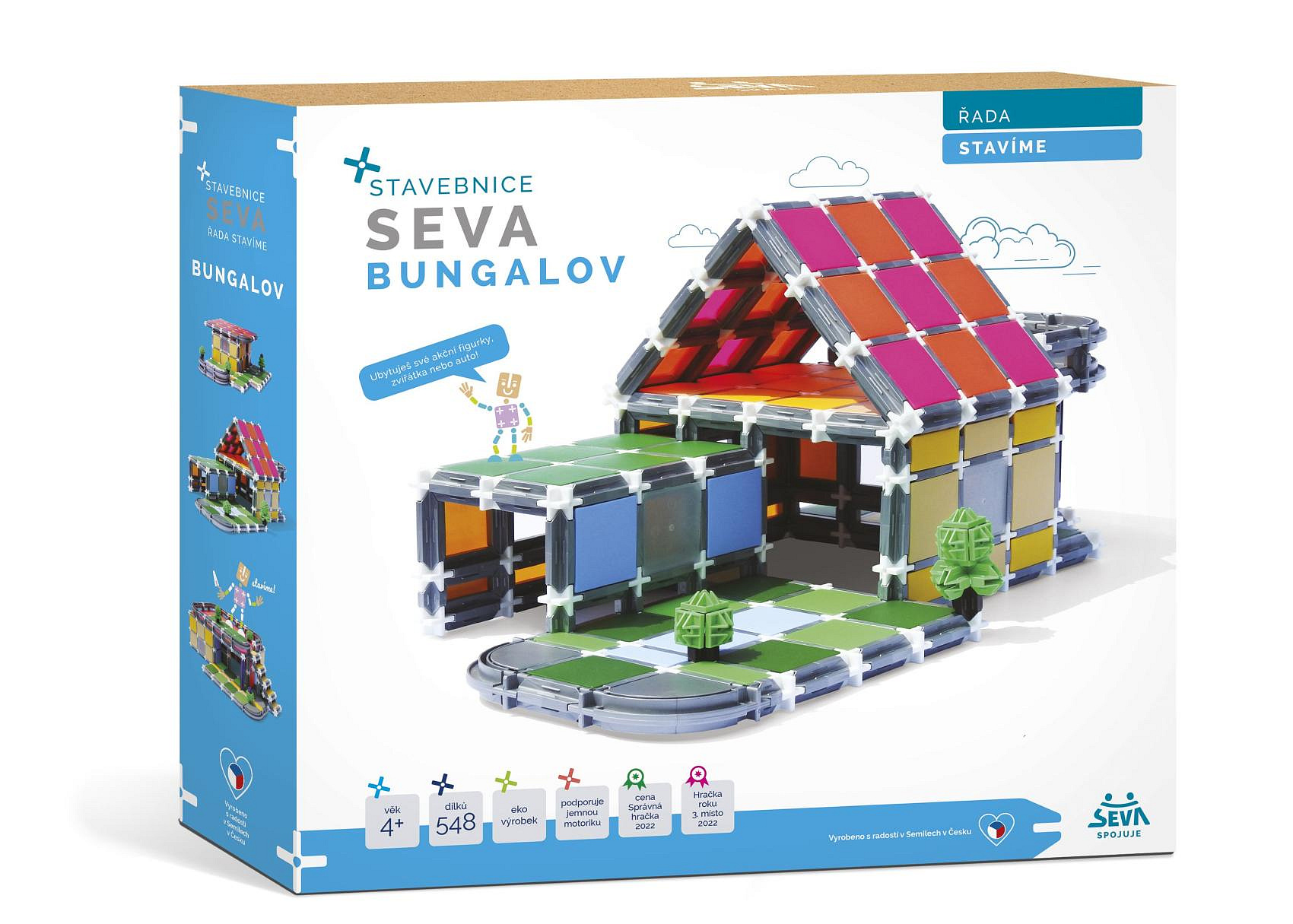 "Mami, tati! S bráchou jsme pro nás postavili nový dům!“ Se stavebnicí SEVA STAVÍME Bungalov postavíte mnoho variací na téma náš dům, náš hrad.... krásné je, že každý chceme bydlet jinak. Už tušíte, jak vy? Balení obsahuje 548 dílků. Rozměr krabice: 35 x 33 x 7 cm Vhodné od 4 let