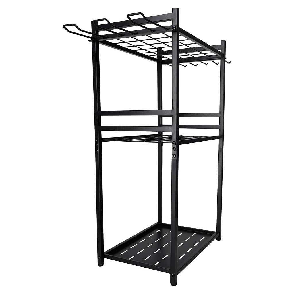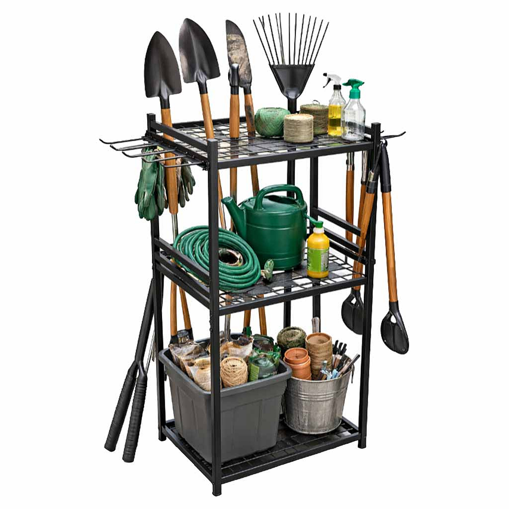 • Solidna, metalowa konstrukcja - stabilna rama i wytrzymałe półki zapewniają bezpieczne przechowywanie nawet ciężkich narzędzi ogrodniczych bez ryzyka chwiania się stojaka