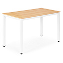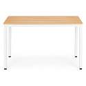 The tabletop is made of durable MDF board covered with melamine in a light oak color, giving the whole piece a natural and light appearance. The smooth surface is easy to keep clean and works well in everyday use. The structure is supported by metal legs powder-coated in white, ensuring stability and protection against corrosion and mechanical damage.