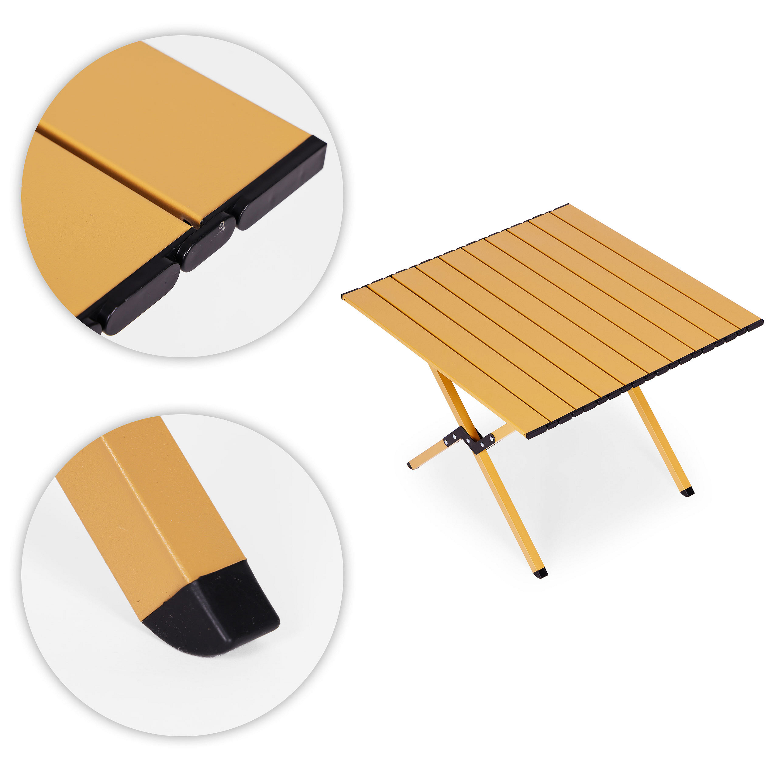 The rolled tabletop made of slats creates a comfortable surface for everyday use. It works perfectly for meals, preparing snacks or placing drinks and small accessories during camping, picnics or barbecues.