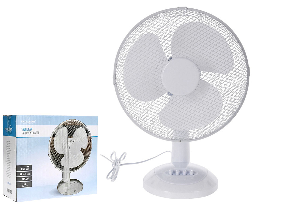 Ventilátor nabízí 3 nastavitelné rychlosti proudění vzduchu pro maximální komfort. Výkonný, ale úsporný motor s příkonem 35 W zajistí spolehlivý a tichý provoz. Napájecí kabel dlouhý 1,5 metru umožňuje flexibilní umístění v prostoru.