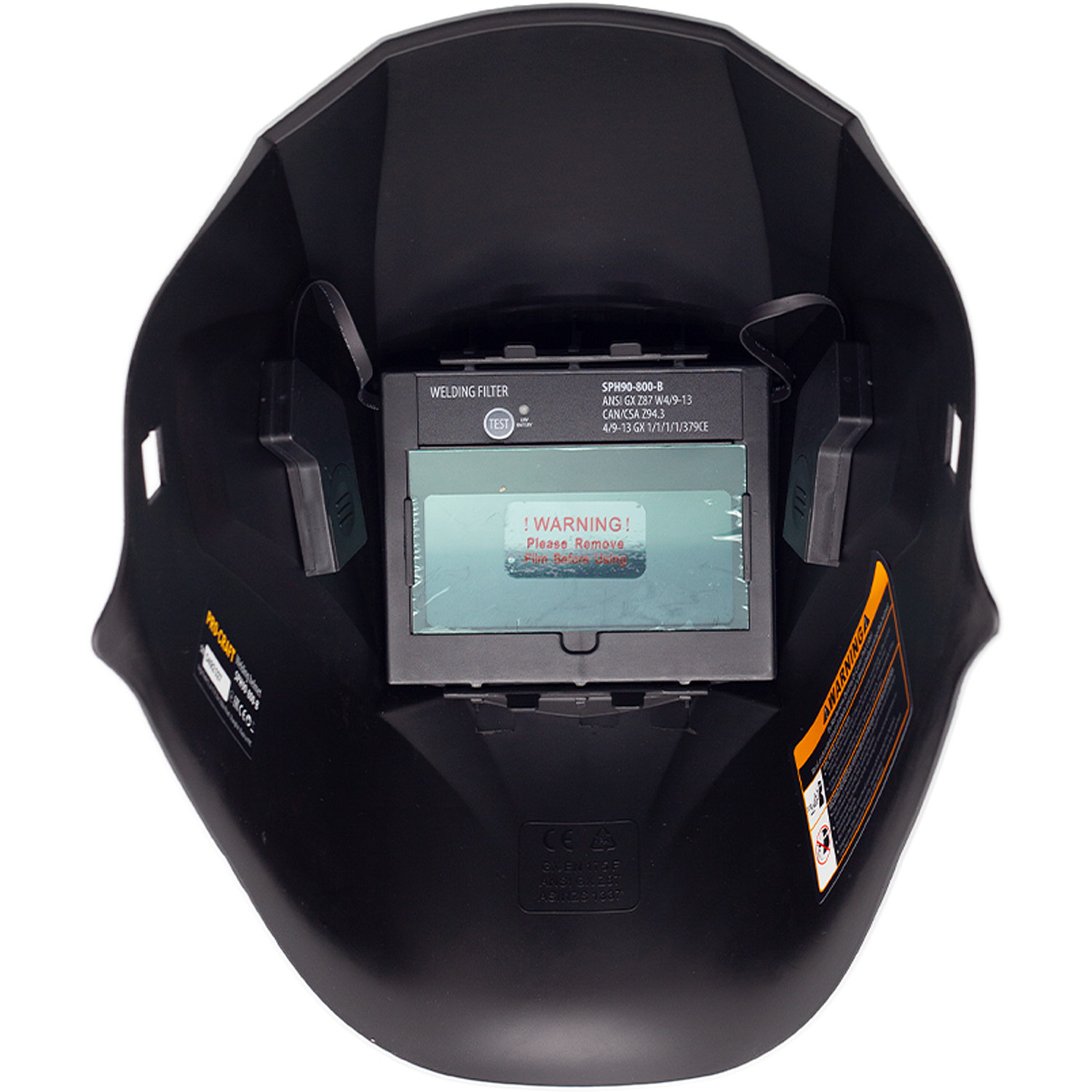 Ochranna proti UV/IR DIN 16, karbonový povrch s motivem "black carbon" Pro metody: MMA, MIG/MAG, TIG>5A, SAW, SMAW, PAC, PAW Velikost průzoru filtru: 98х43mm Rozměry filtru: 126х102mm