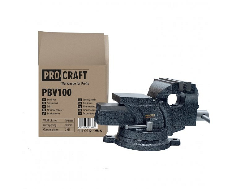 Otočné tělo, otvory pro upevnění. Šířka čelistí (mm) 100 Rozvor čelistí (mm) 90 Maximální upínací síla (kN) 7