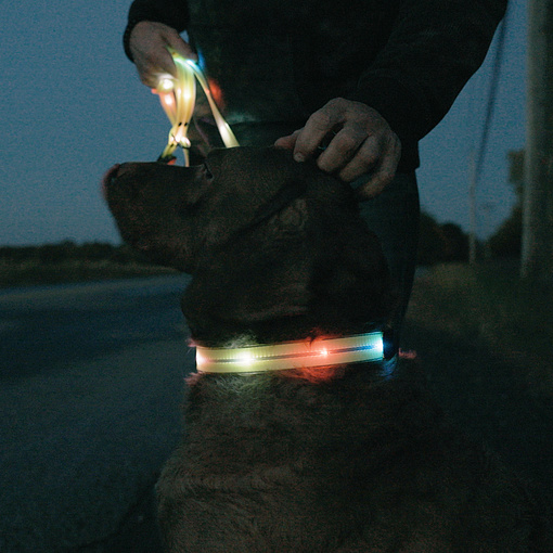 The evening walk together with your favorite four-legged friend is safe again thanks to the Glo N Go reflective belt cover.
