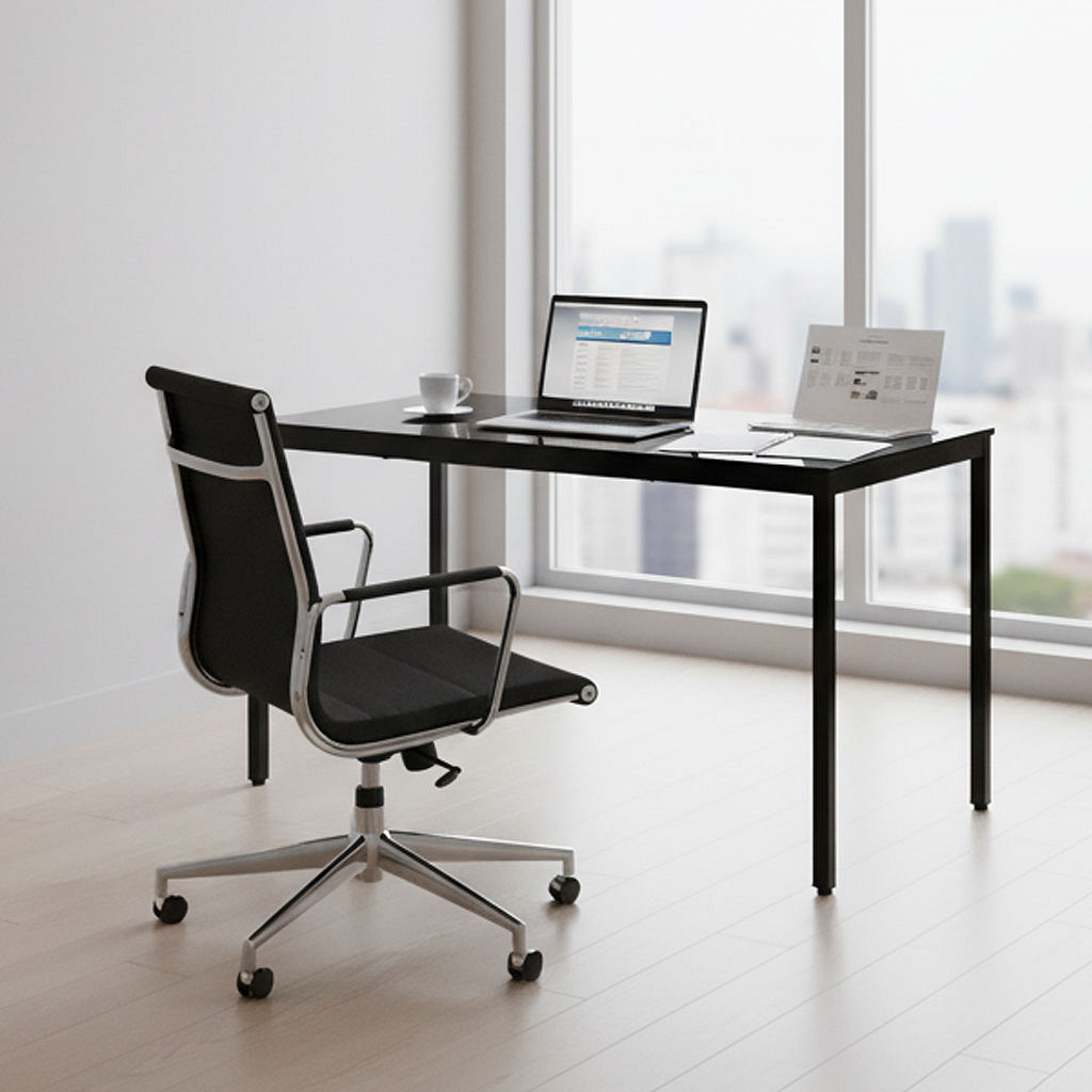 The tabletop is made of durable MDF board coated with melamine, which is resistant to scratches and easy to maintain. The structure is supported by powder-coated metal legs, providing resistance to corrosion and mechanical damage.