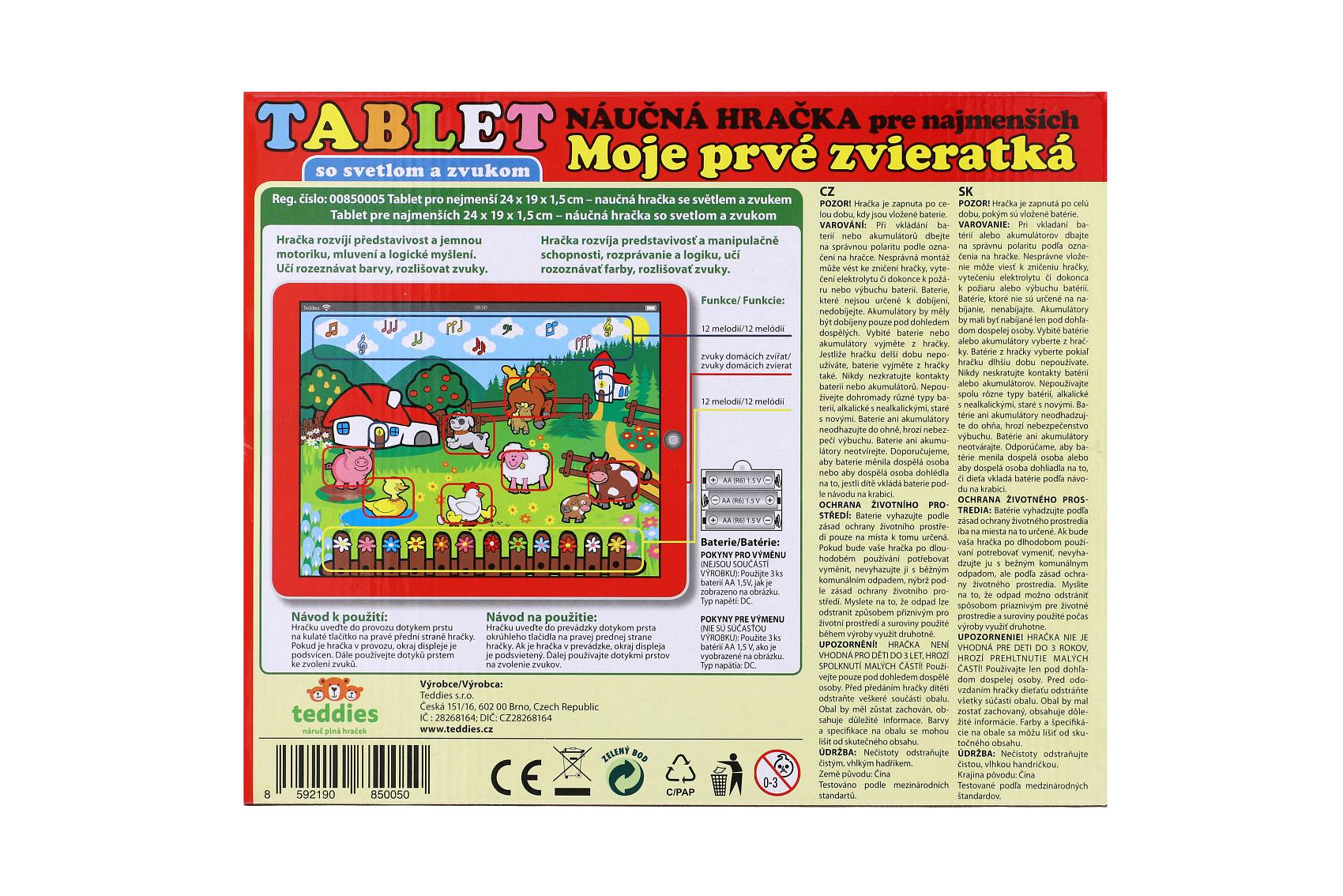 Tablet farma pro nejmenší Moje první zvířátka 24x19x1,5cm na bat. se světlem a zvukem v krabičce MPZ