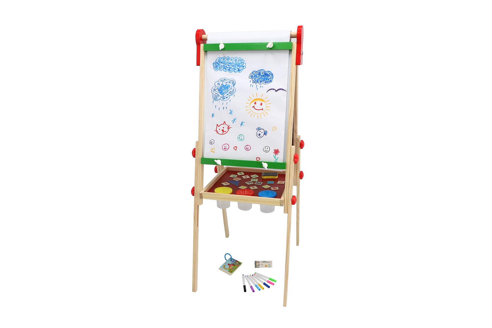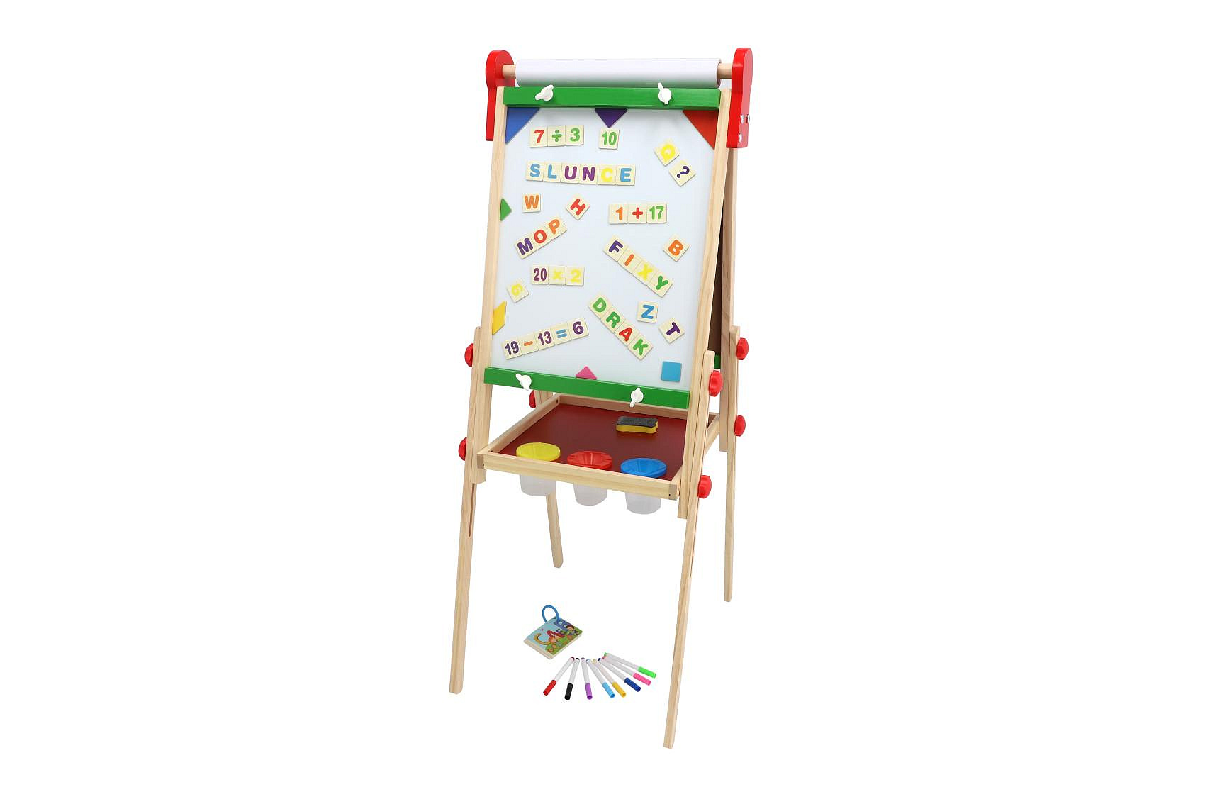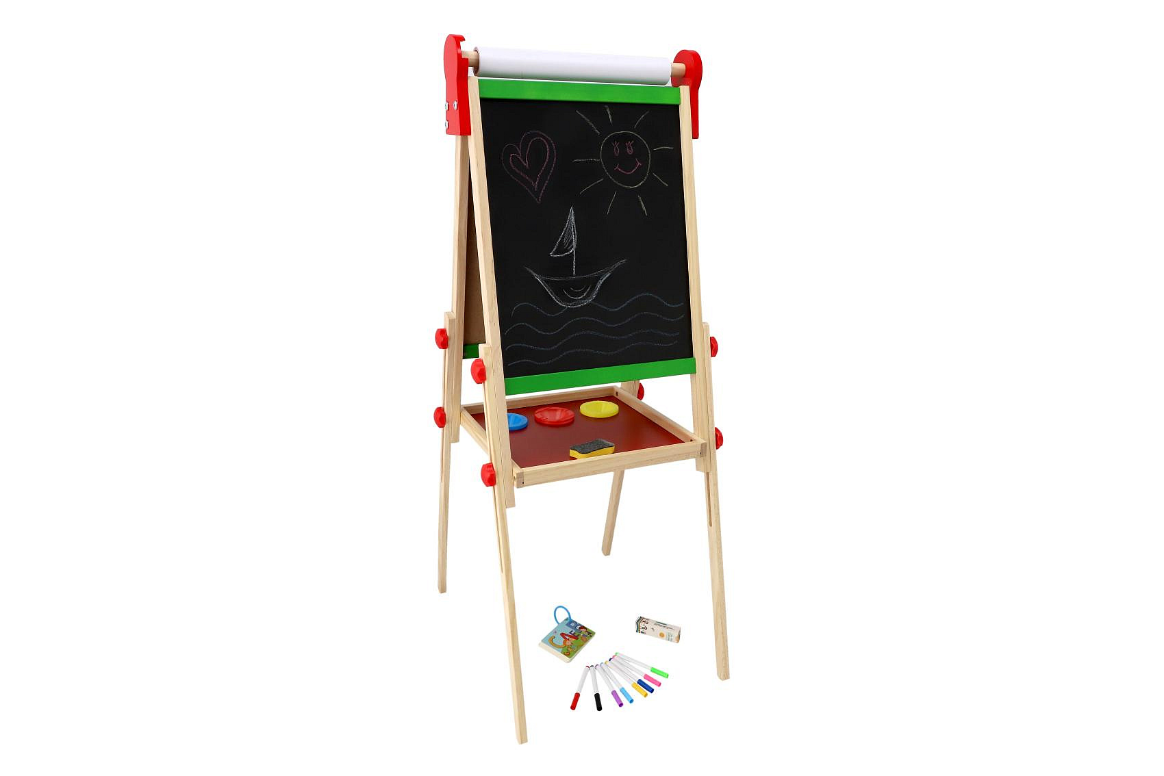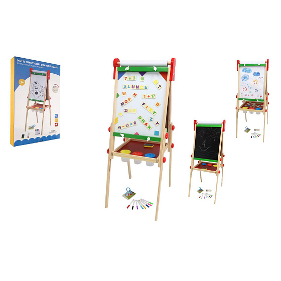 Tabule oboustranná magnetická dřevo černá/bílá 35x43cm s rolí papíru s doplňky v krabici 40x61cm