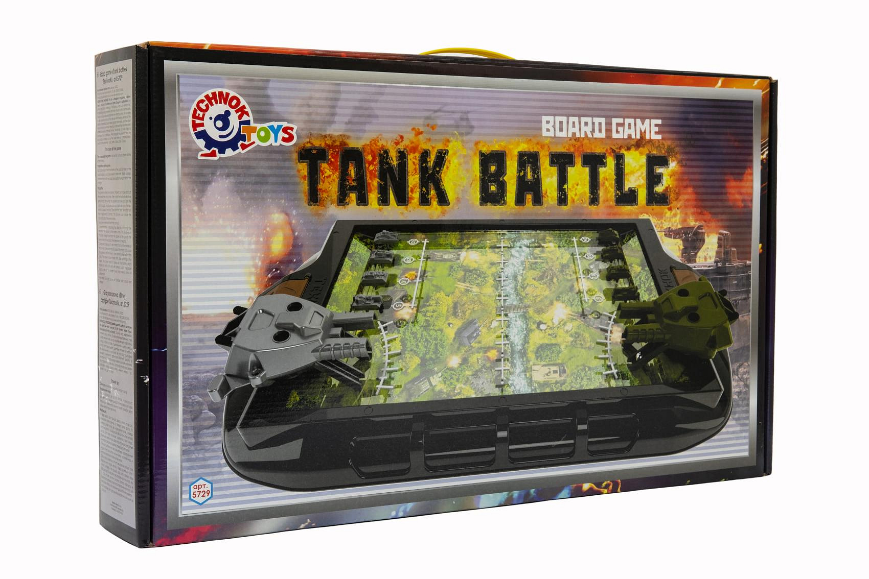 Stolní tanková bitva. Účelem hry je co nejdříve porazit nepřítele. Každý hráč umístí své čtyři tanky do speciálních otvorů na hrací desce vedle sebe a rovnoměrně si rozdělí kuličky. Každé dělo může být vyzbrojeno dvěma míčky (jeden míček v každém slotu děla). Rozměry balení 55 x 33 x 9 cm. Vhodné pro děti od 5 let.