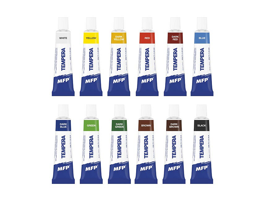 Namalujte si s dětmi obrázek pomocí temperových barev, které vynikají jasnou barevností. Děti můžou malovat štětcem, ale i prsty. Temperové barvy mají vysoké krycí vlastnosti, neobsahují žádné toxické látky. Balení obsahuje 12 odstínů, každá barva má 12ml. Rozměr krabičky: 10 x 25 x 2 cm Vhodné pro děti od 3 let