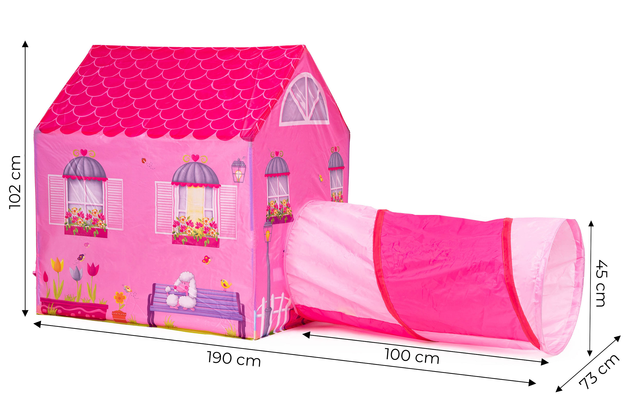 An additional element of the tent is a tunnel that can be mounted on one of its sides. The self-disassembling structure allows you to quickly and easily enlarge the house with an element that will be a great variety of fun.