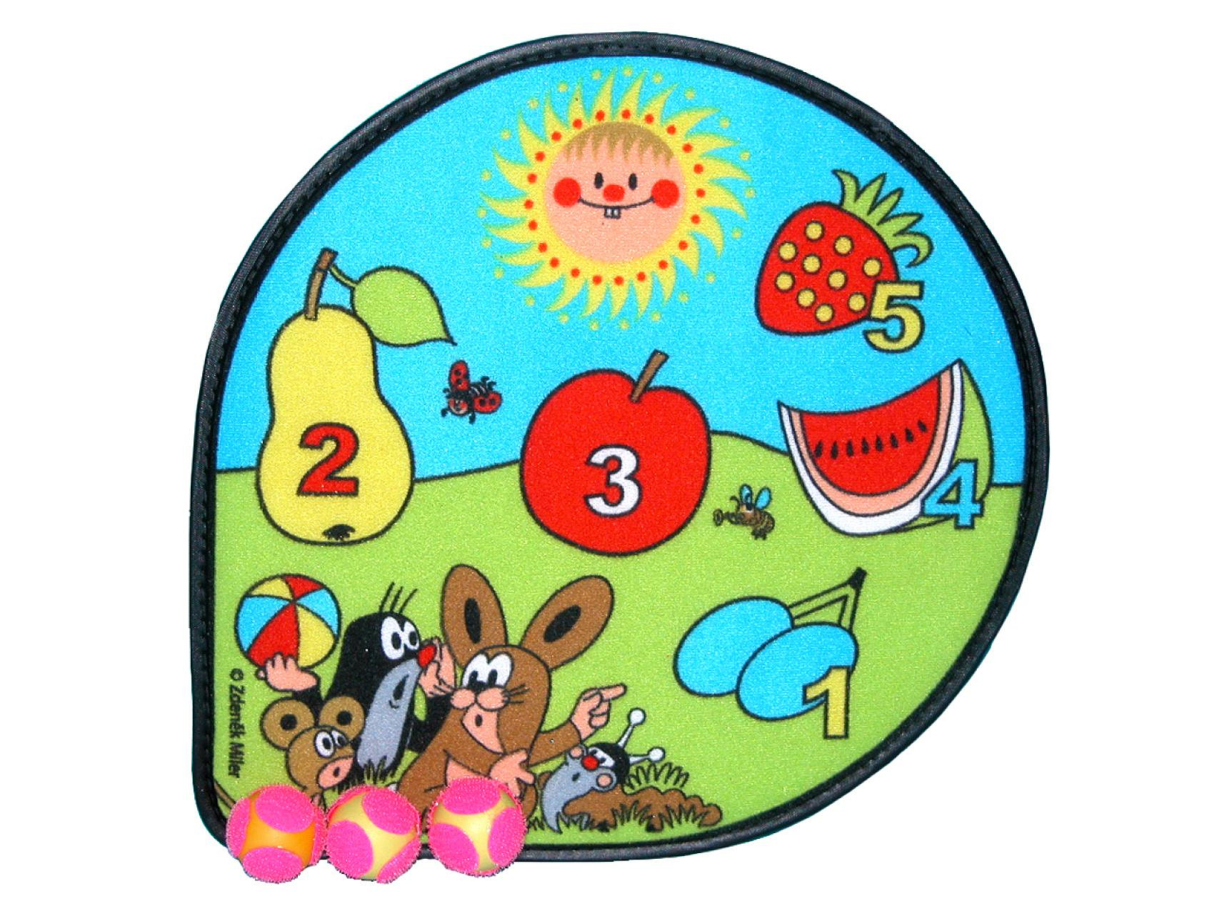 Terč s Krtečkem na suchý zip s veselými motivy Krtka a jeho kamarádů. Terč Krteček na suchý zip obsahuje 3 míčky, suchý zip a terč k zavěšení. Malé děti se můžou naučit soutěžit a správně se trefit do terče, aniž by přitom poškodily nábytek. Vhodné pro děti od 3 let.