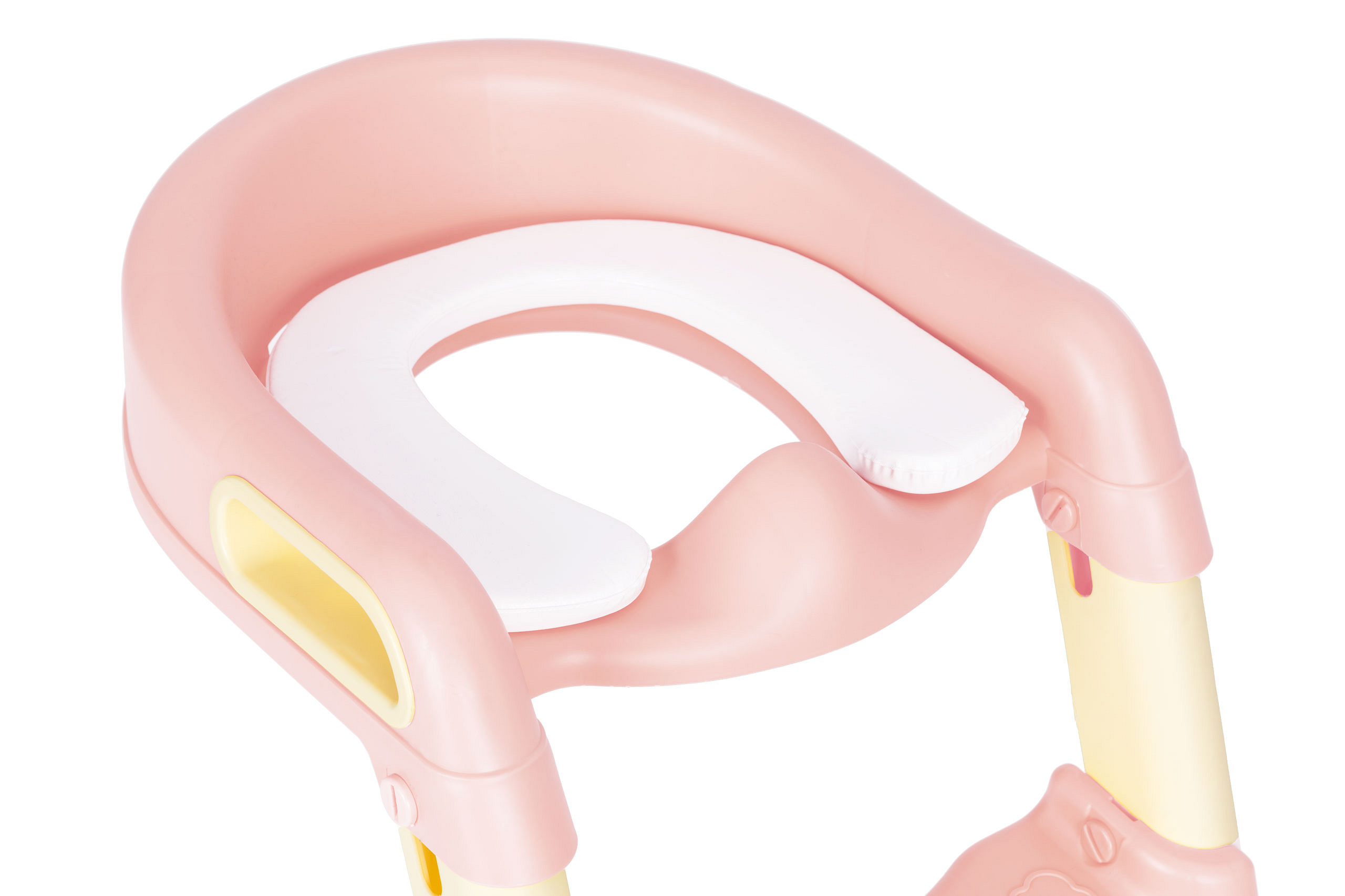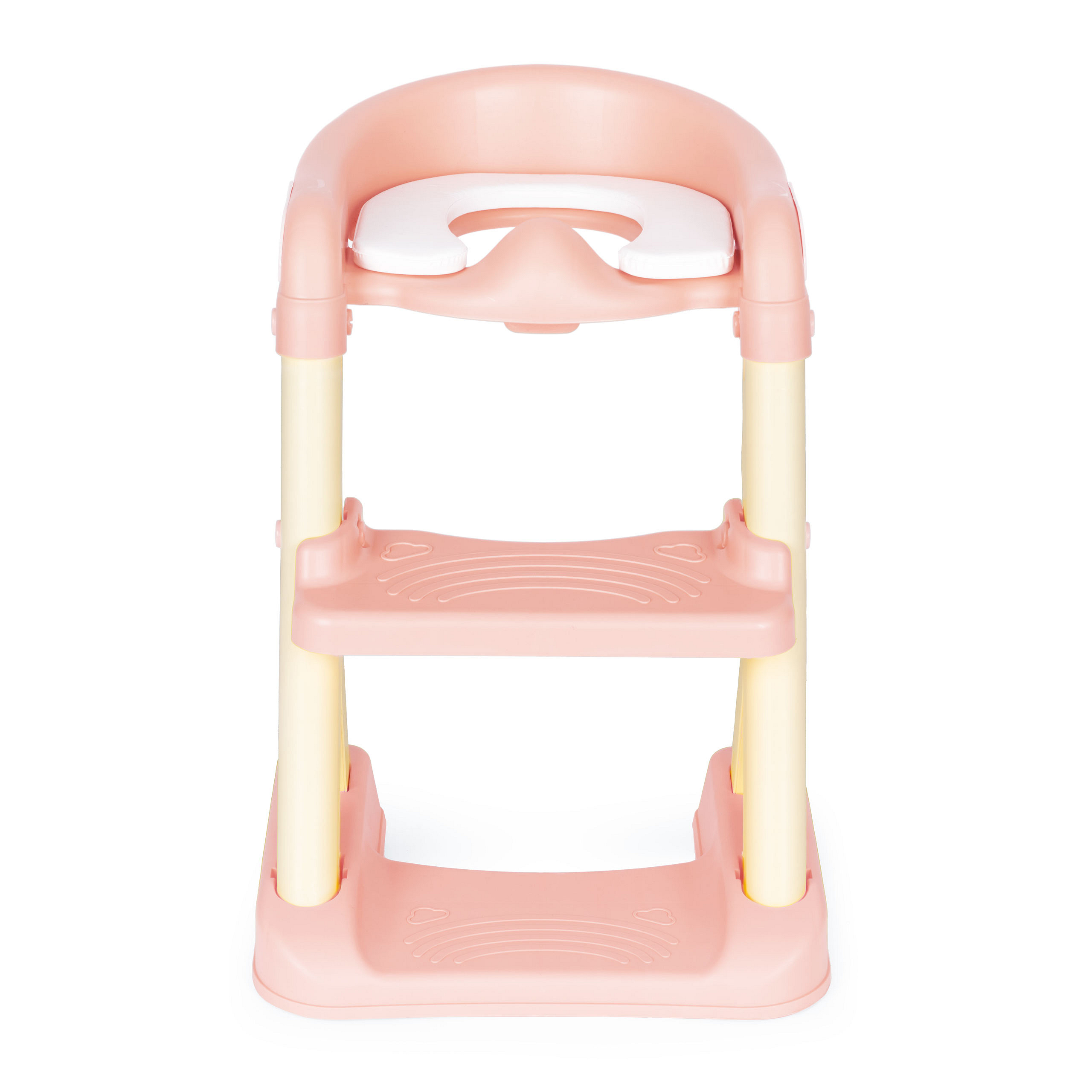 The set is made of durable plastic, ensuring it will serve throughout the period when your child is not yet able to use the toilet independently. The steps have adjustable height, allowing you to adapt them to your child’s size. The steps feature special anti-slip grooves to prevent feet from slipping while climbing. The seat size is perfectly matched to all standard toilets, so it will fit securely and stay in place during use. For added comfort, the seat has special handles and an additional soft insert for your child to sit on.