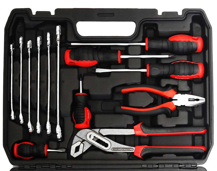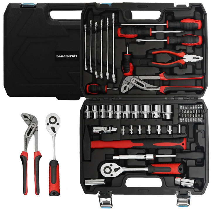 The BauerKraft tool set in a robust case is ideal for every DIY enthusiast. With 58 pieces, it enables smooth execution of repair and assembly tasks at home or in the workshop. The set is useful for assembling furniture, repairing a bike, changing an outlet, or preparing installations. The case with designated slots for each tool ensures order and quick access. The carbon steel and chrome-vanadium steel ensure durability, and rubberized handles improve comfort during work.
