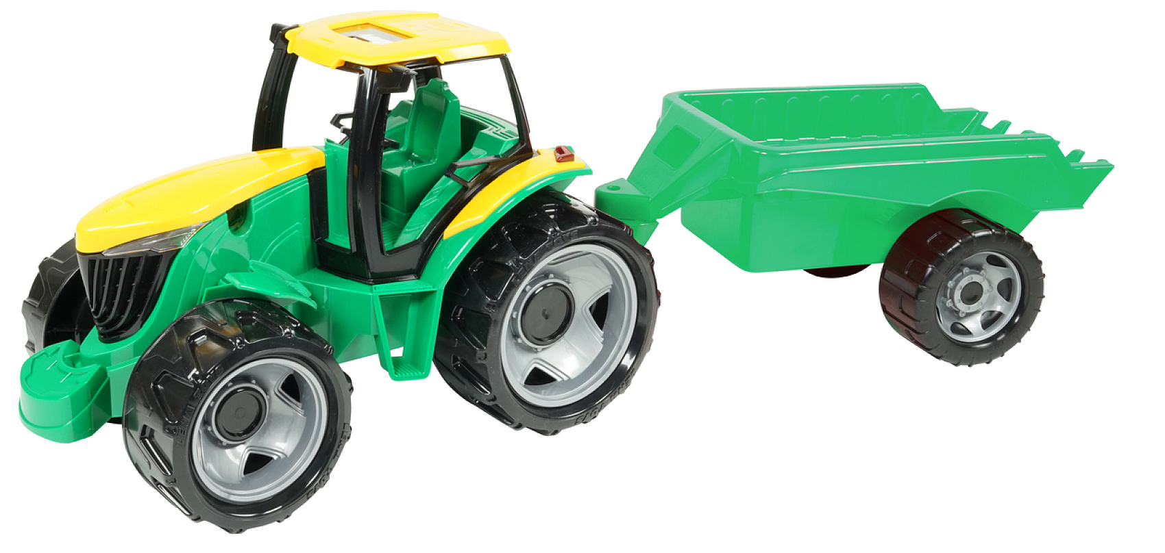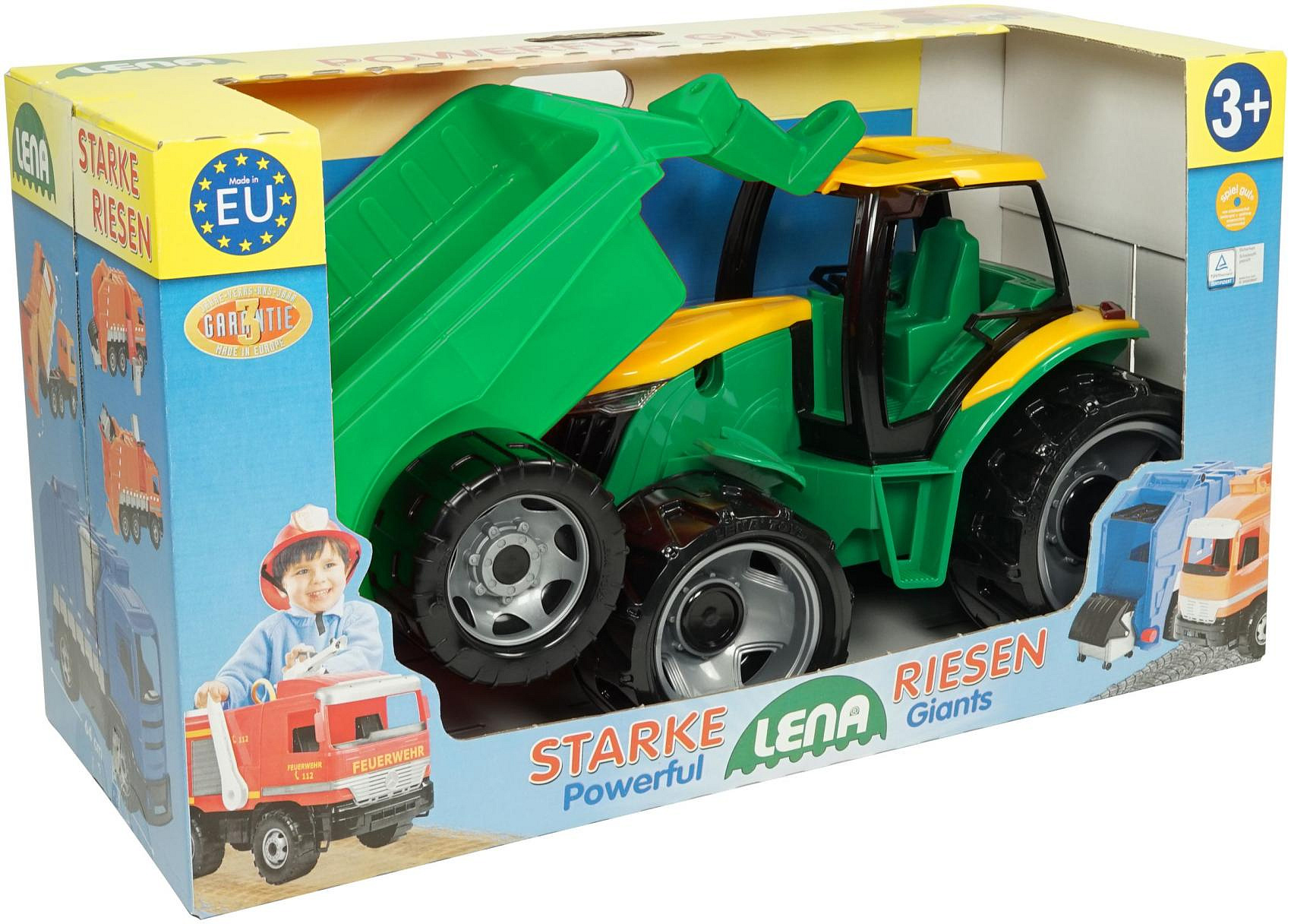 Plastový traktor s vozíkem, který je připraven na hrátky na písku. V krabici 71x35x29 cm. Vhodné od 3 let.