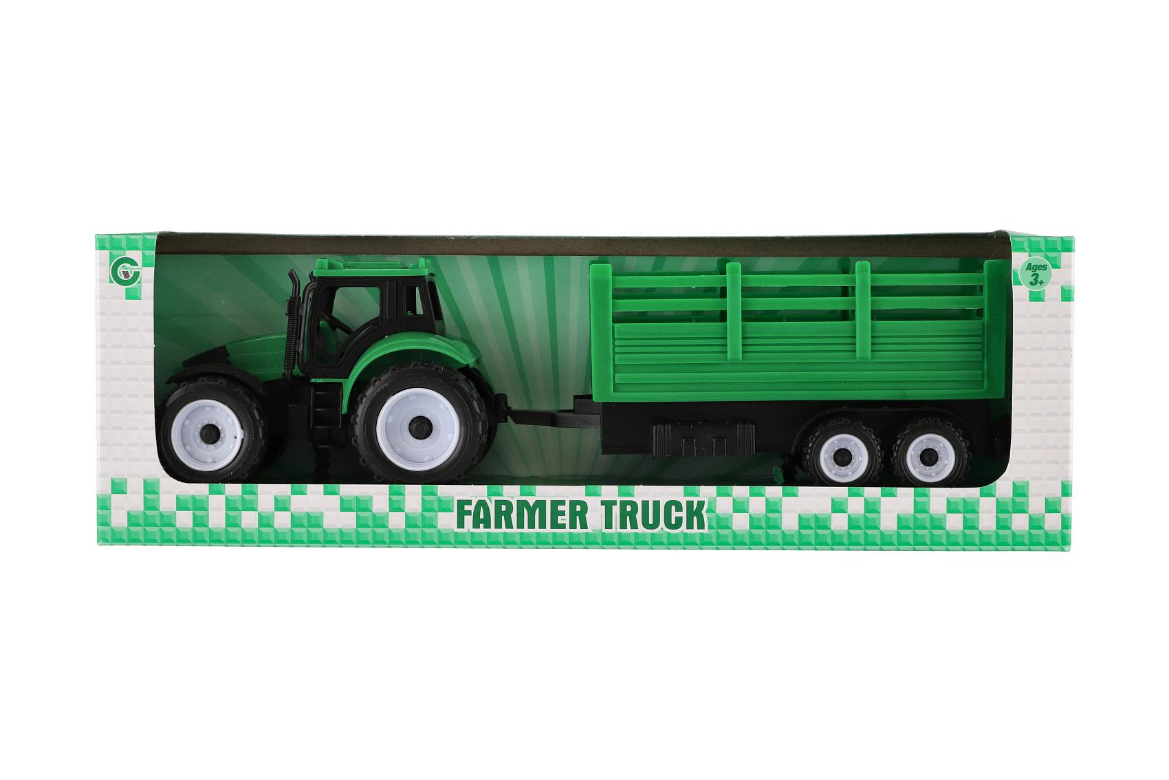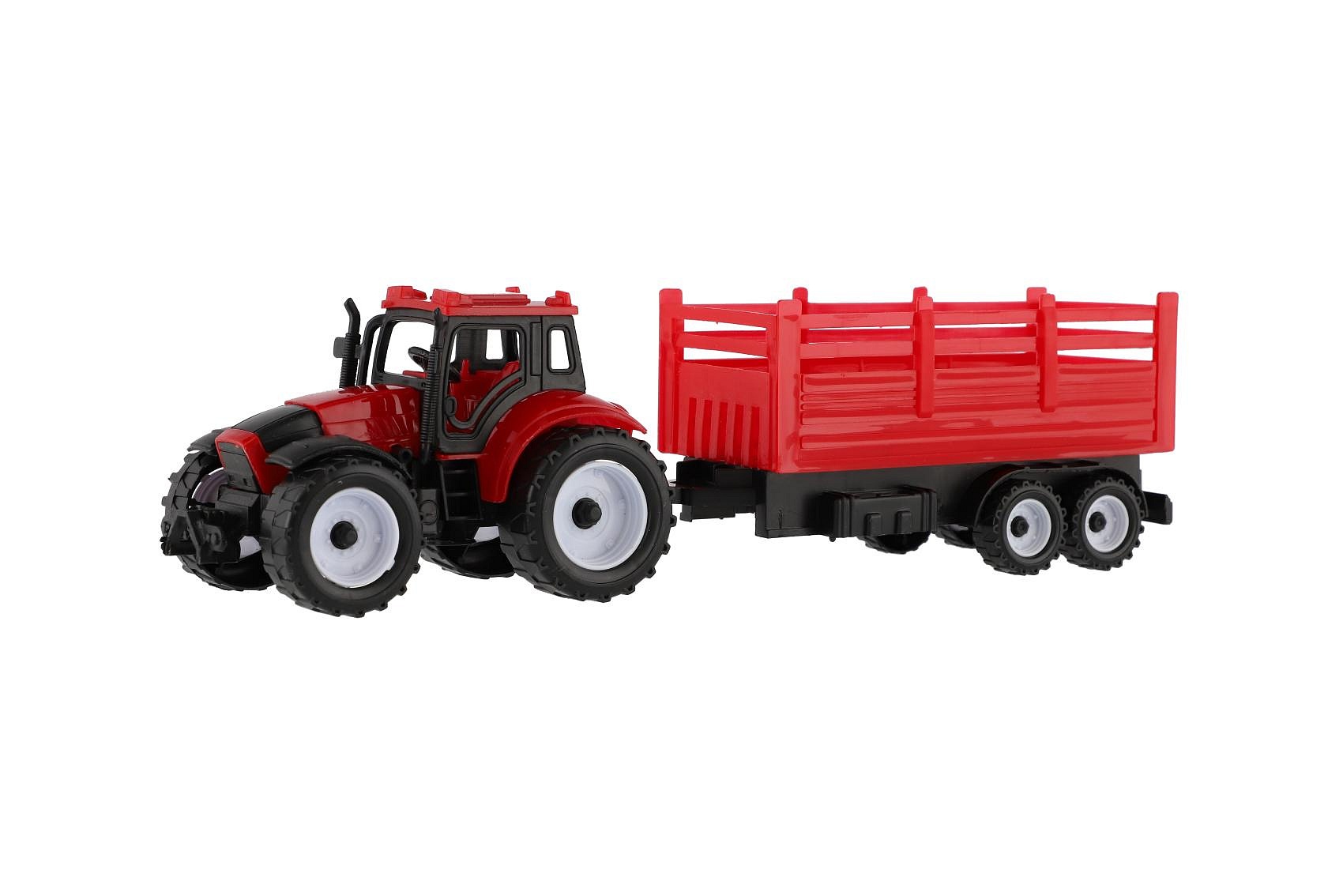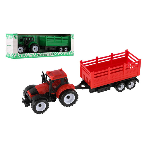 Traktor s přívěsem plast 28cm 2 barvy v krabičce