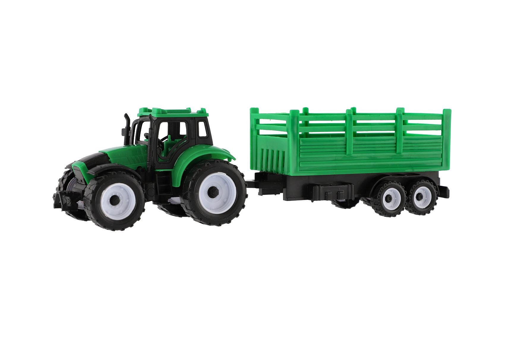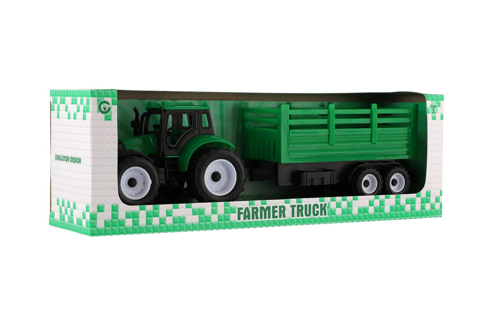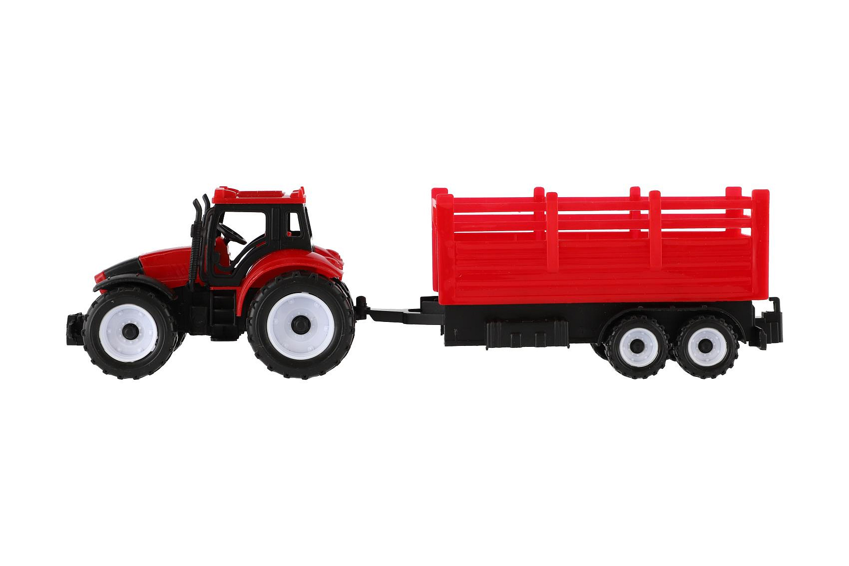 Traktor s přívěsem plast 28cm 2 barvy v krabičce