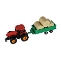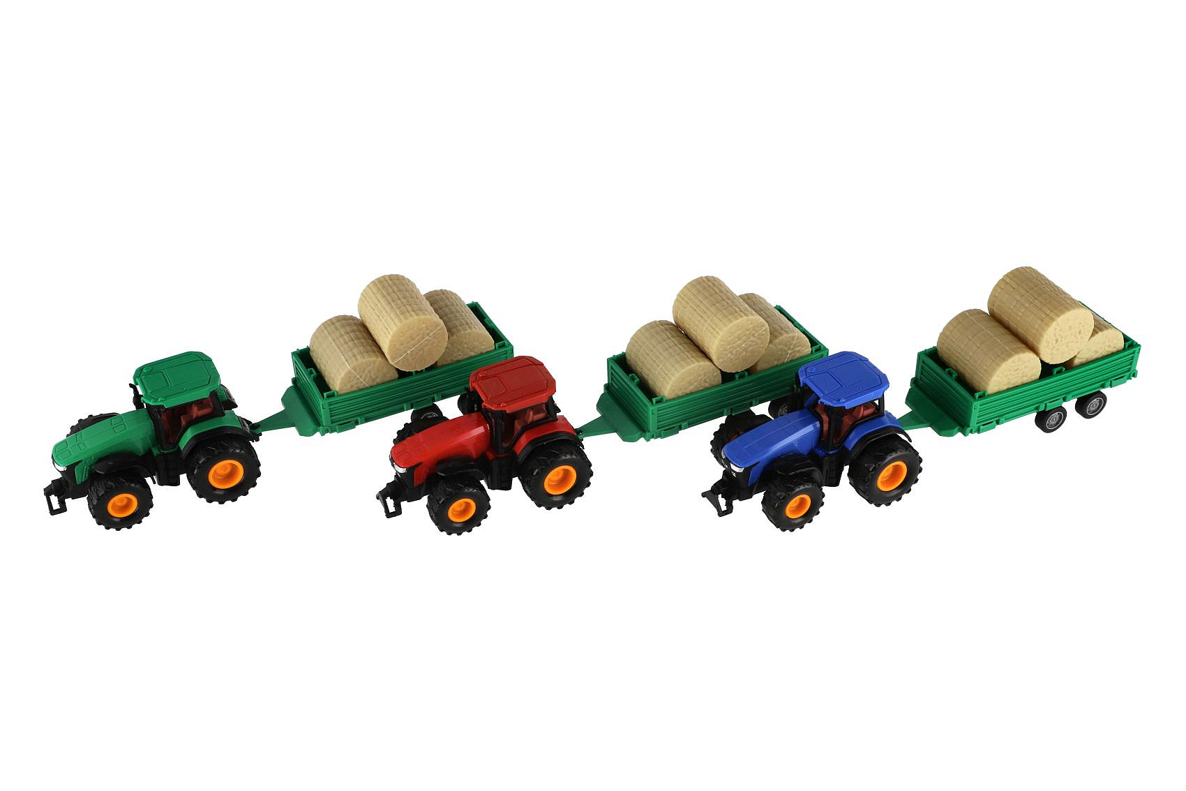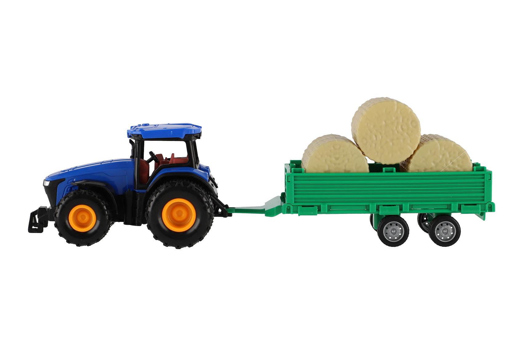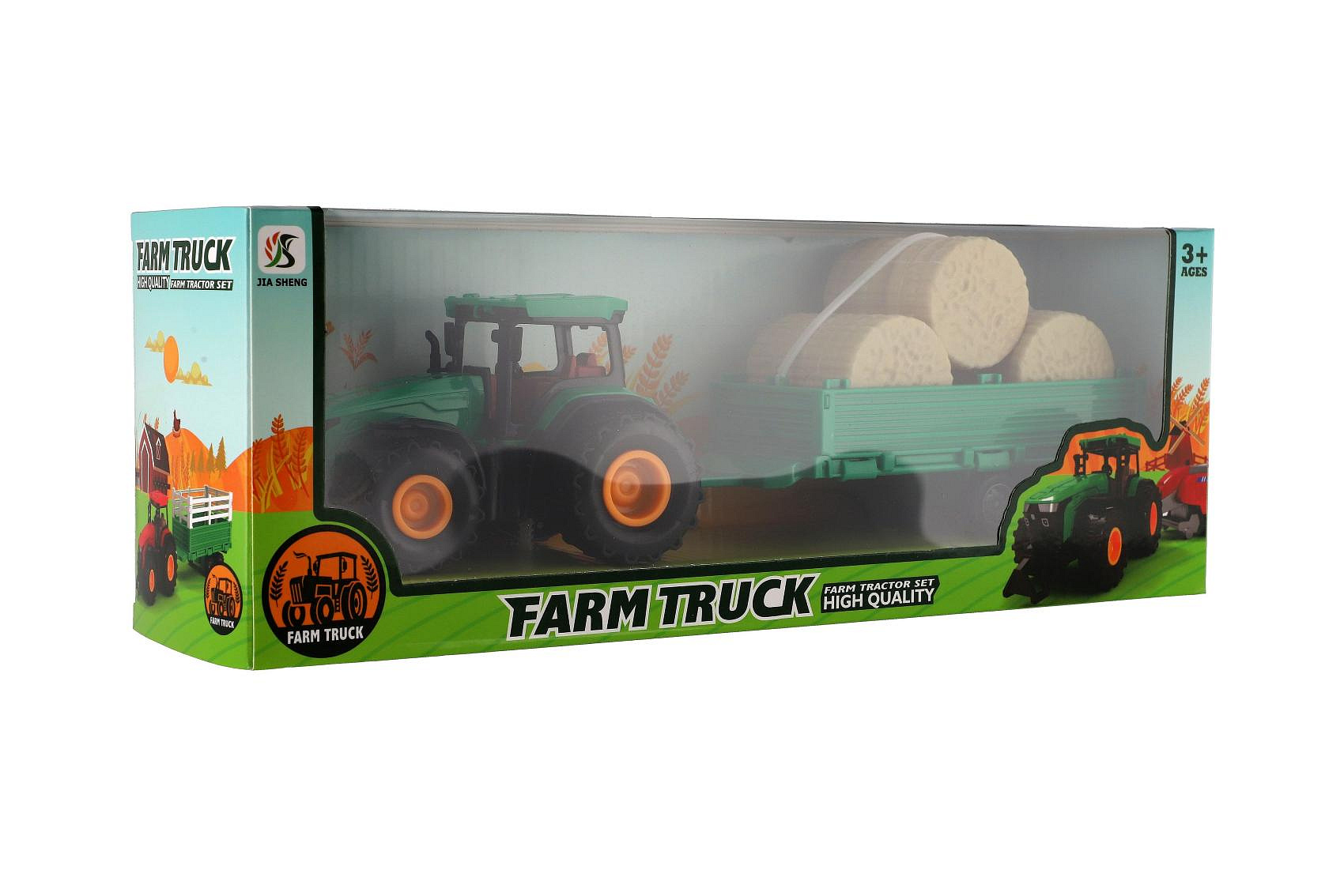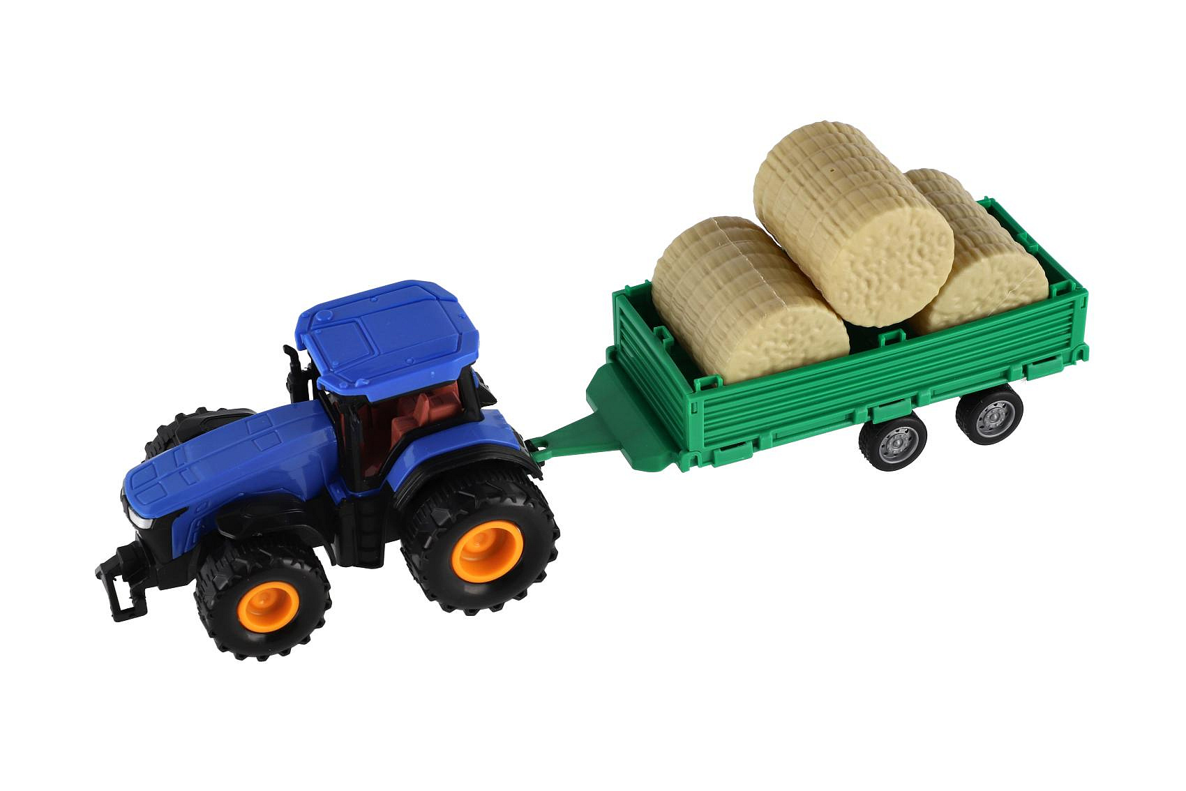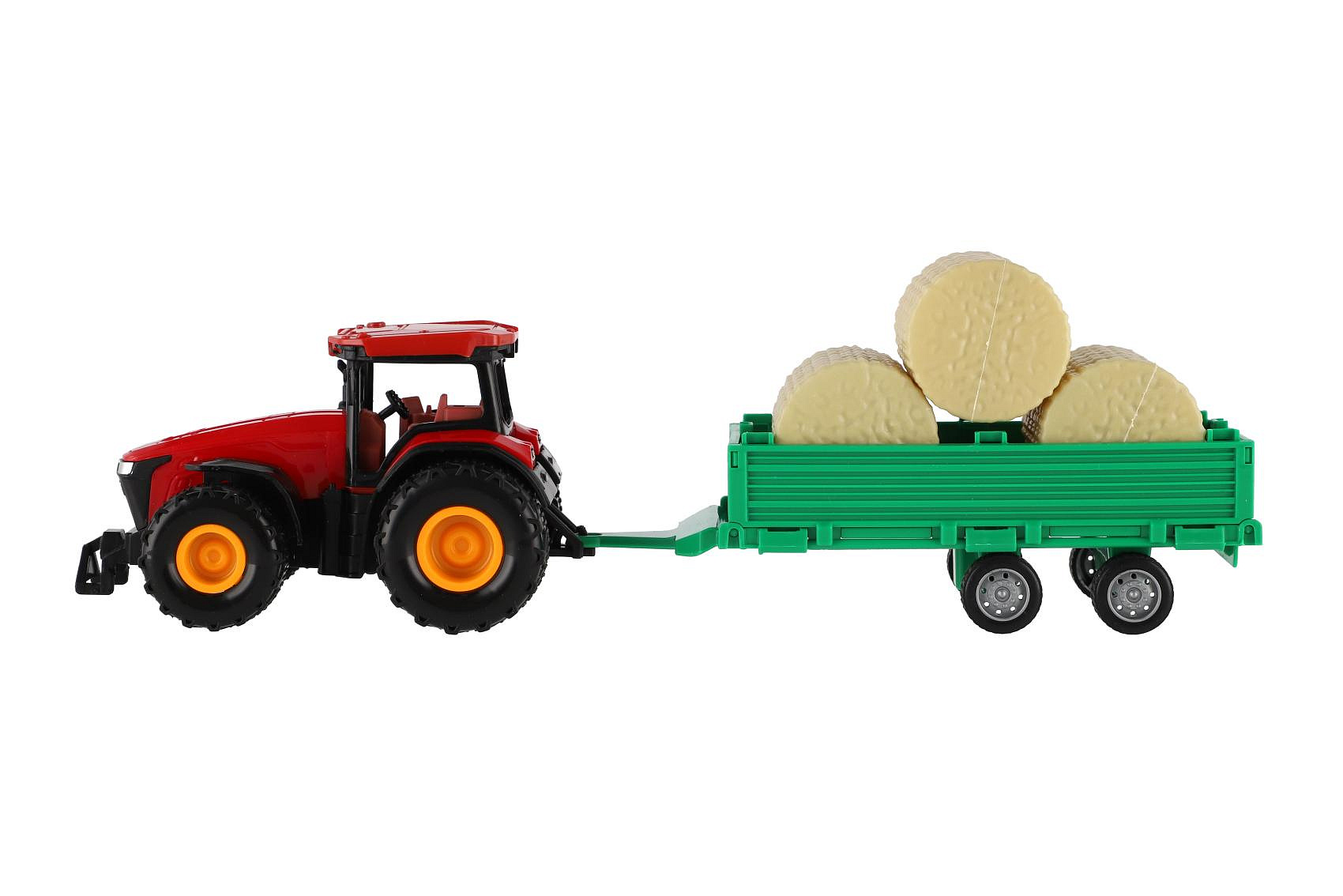Traktor s vlekem s balíkama plast 30cm na setrvačník 3 barvy v krabici 33x12x9cm