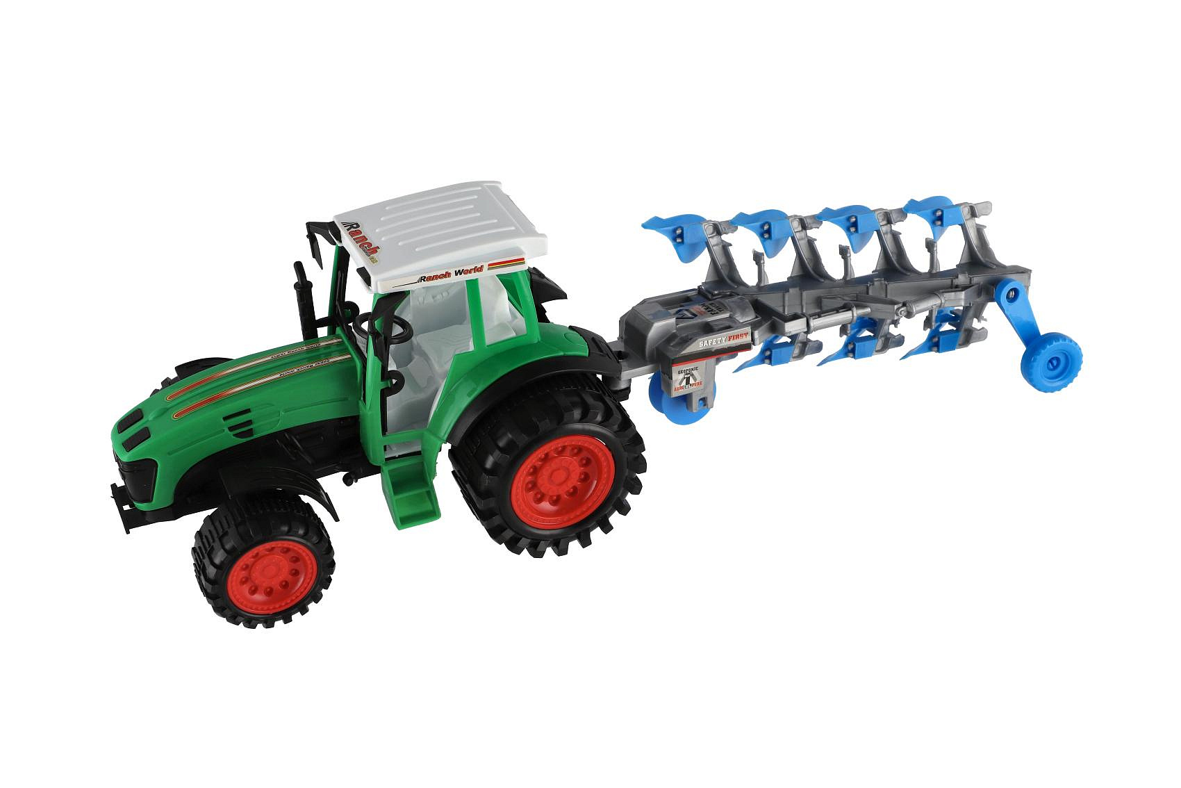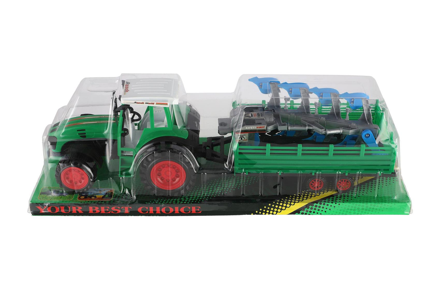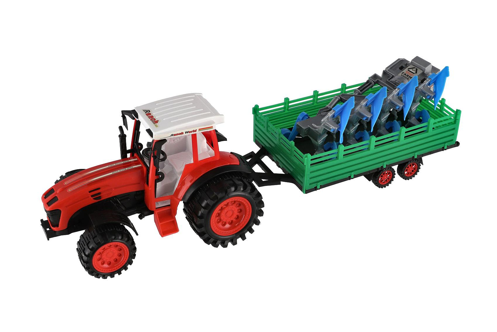 Popis Traktor s vlekem s pluhem plast 53cm na setrvačník 2 barvy v blistru