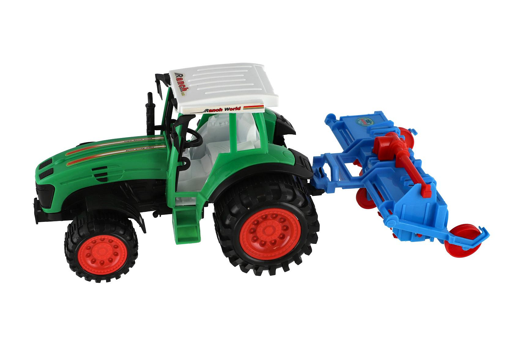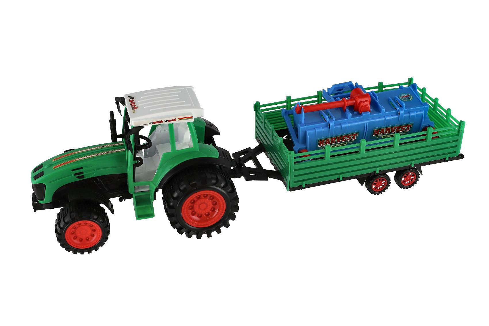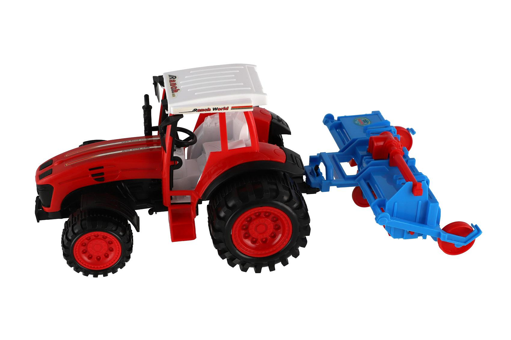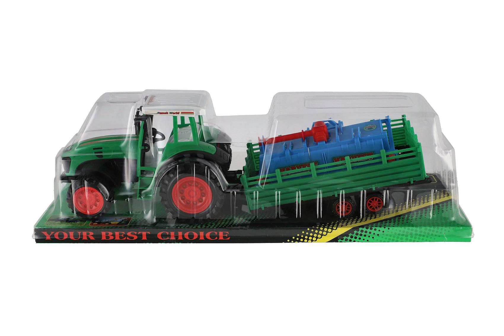Popis Traktor s vlekem s rotavátorem plast 52cm na setrvačník 2 barvy v blistru