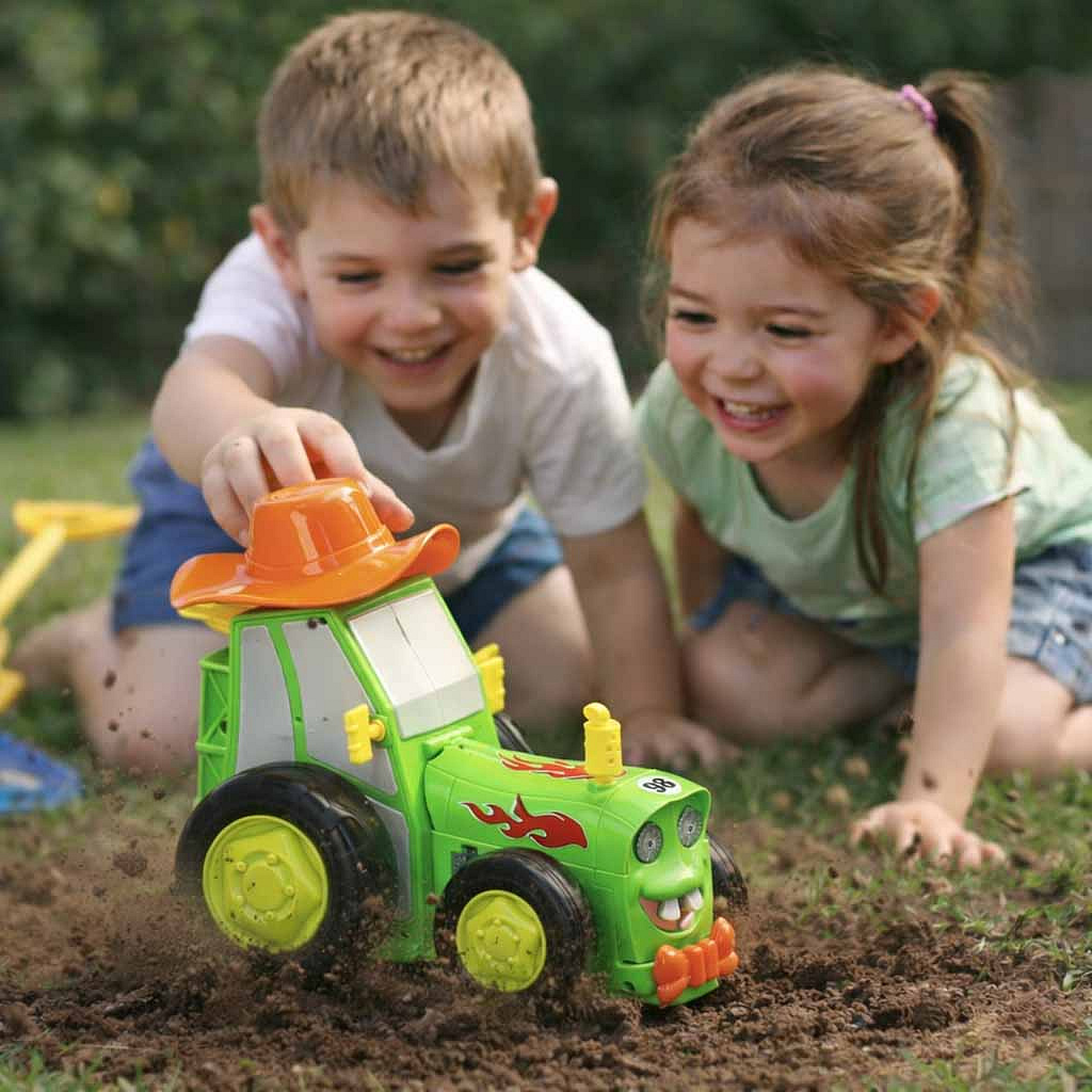 Hračka je skvělým způsobem, jak zabavit dítě na dlouhé hodiny – poskytne fantastickou zábavu a spoustu smíchu. Co více, k zábavě s traktorem nebude nikoho třeba dodatečně přemlouvat, protože kdo by mohl odolat usměvavému traktoru a kovbojskému klobouku? Spíše ne!