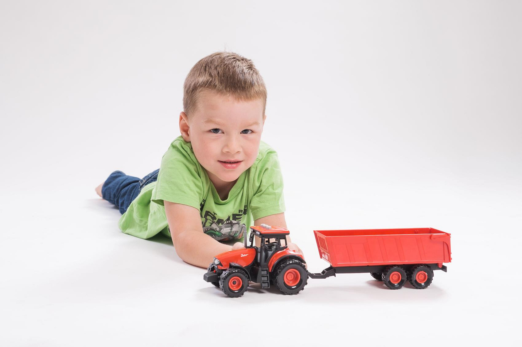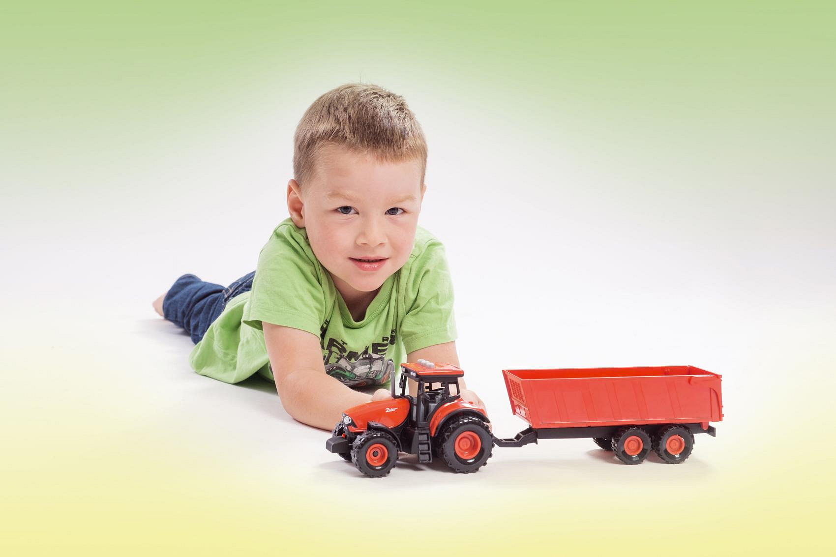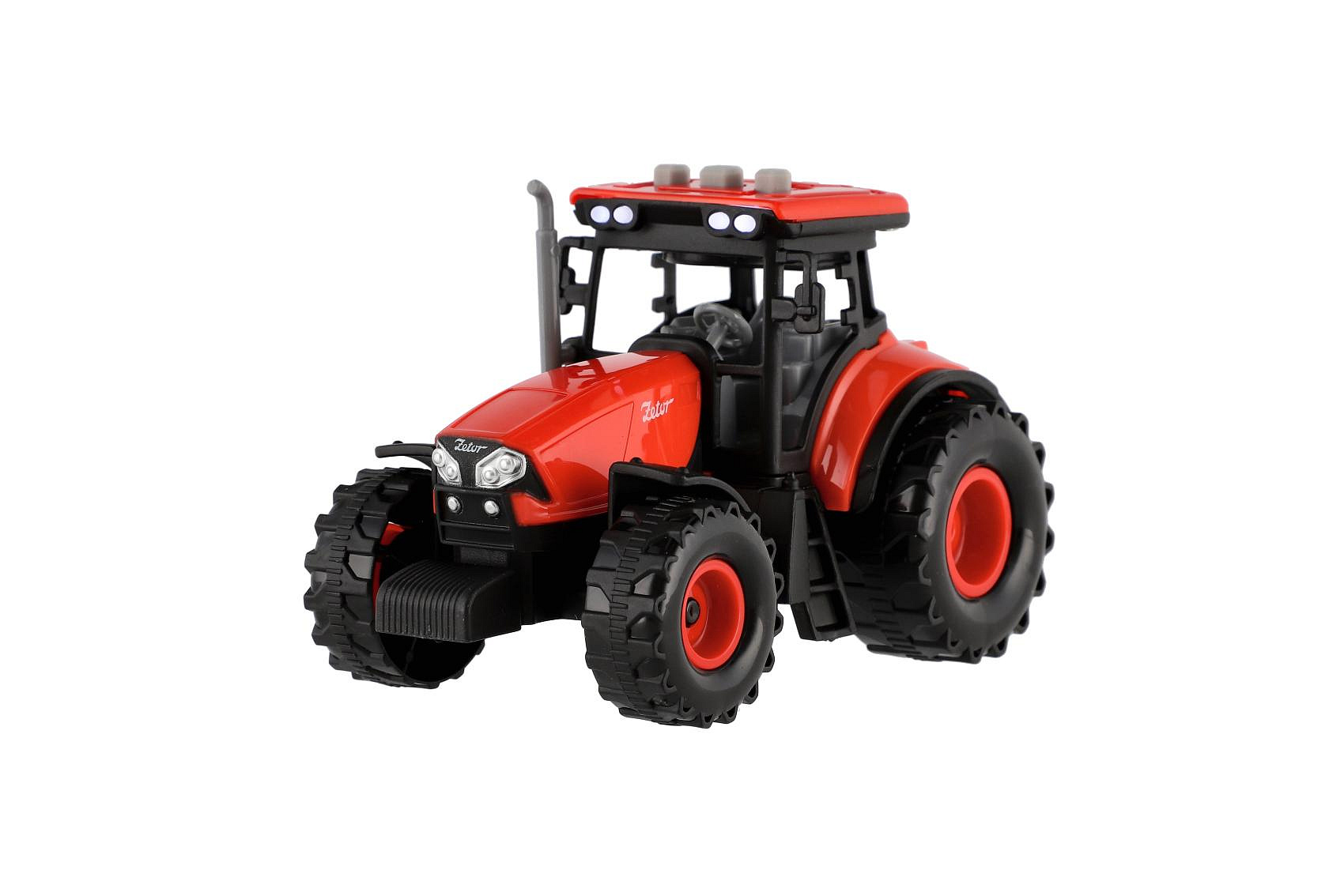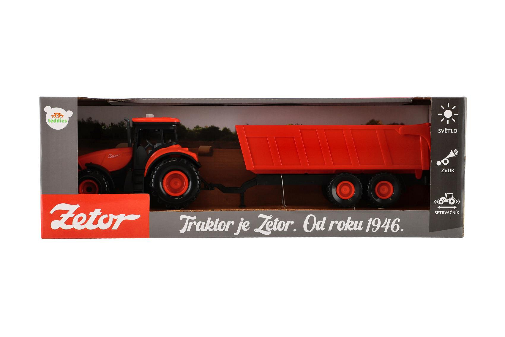 Traktor Zetor s valníkem plast 36cm na setrvačník na bat. se světlem se zvukem v krabici 39x13x13cm