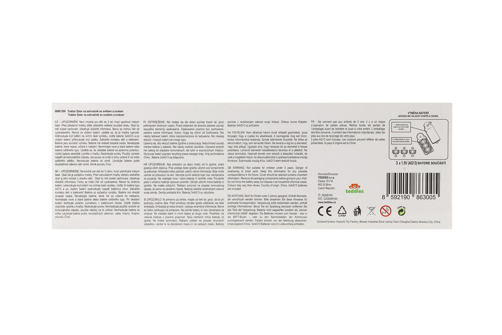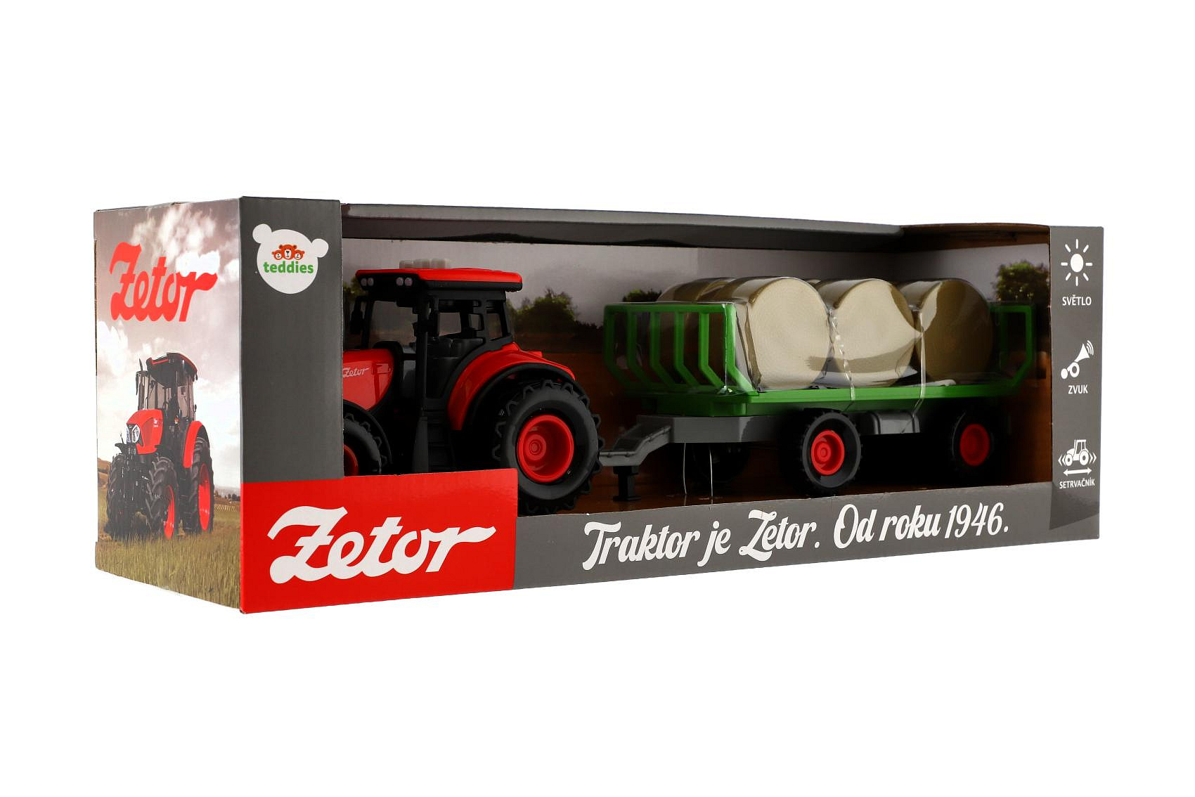Traktor Zetor s vlekem a balíky plast 36cm na setrvačník na bat. se světlem se zvukem v krab. 39x13