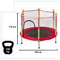 Trampolina o średnicy 140 centymetrów będzie idealnym miejscem do skakania dla Twojego malucha. Dzięki małej wysokości od podłoża dziecko będzie czuło się bezpiecznie podczas skakania oraz nie będzie miało problemu z wejściem na matę.