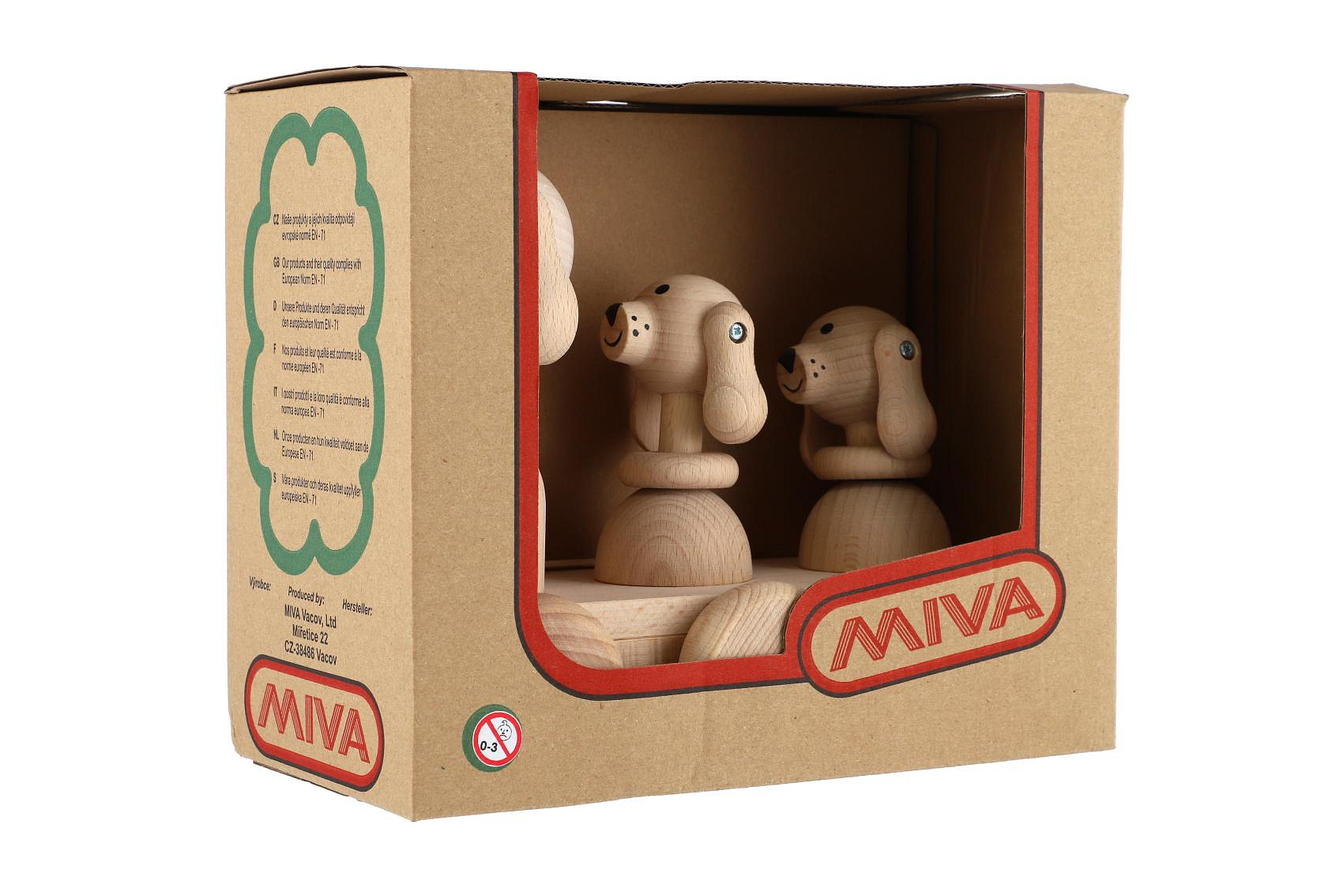 Popis Tři psi tahací přírodní dřevo 22cm v krabici 22x18x12cm