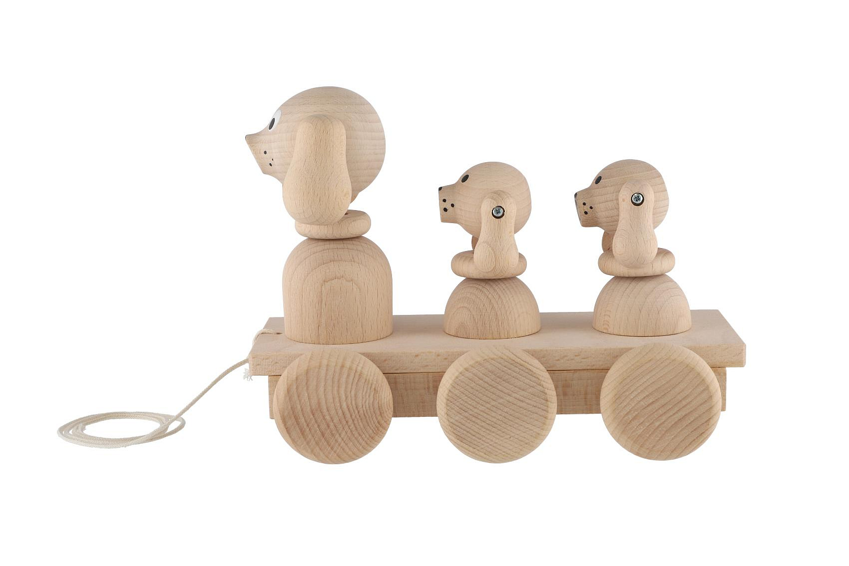Začalo vaše děťátko již s prvními krůčky? Každé dítko má z chůze obrovskou radost a pro ještě větší zábavu mu pořiďte dřevěnou tahací hračku. Tři psi se při jízdě roztomile hýbou. Rozměr hračky: 22 cm Rozměr krabice: 22 x 18 x 12 cm Vhodné od 3 let
