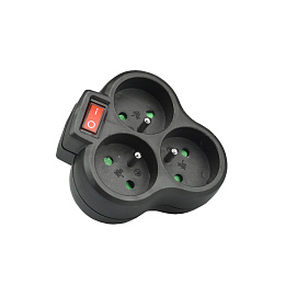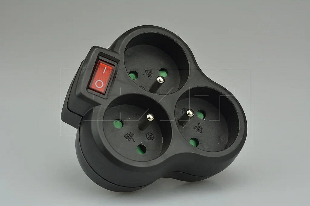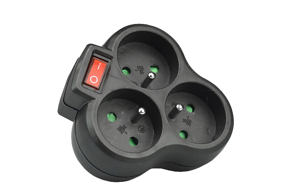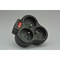 Trojúhelníková rozbočka 3x kulatá SOLIGHT s dětskou ochranou a vypínačem - Černá