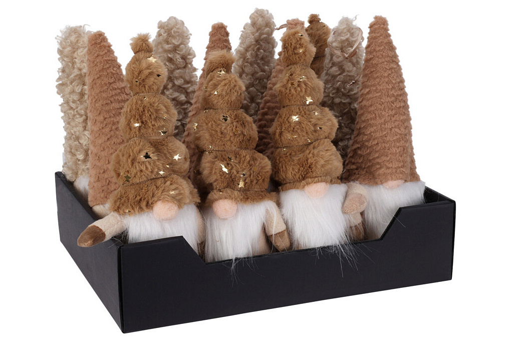 Vytvořte si kouzelnou atmosféru s těmito roztomilými trpaslíky o výšce 22 cm. Každý trpaslík má tělo z polyestera a polystyrenu v hnědé barvě a je k dispozici ve třech různých designech – s krémovým kloboukem, hnědým kloboukem a zatočeným hnědým kloboukem. Tato dekorace je ideální pro vánoční výzdobu, ozdobení stolu nebo jako stylový doplněk do vašeho interiéru. Každý kousek je opatřen barevným závěsným štítkem pro snadnou prezentaci.Více