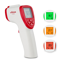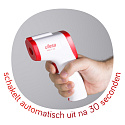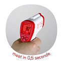 This non-contact infrared thermometer is useful for measuring body temperature quickly and accurately. The alarm function indicates when a fever is measured. thanks to the illuminated three-color screen, you are quickly informed about the different body temperatures.