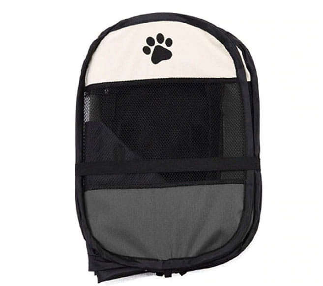 There is an entrance in one of the walls of the pen, through which the animal can freely enter and exit. The entrance of the playpen is made of mesh and fastened with a zipper and has Velcro that allows it to be left open.