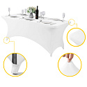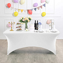 This cover will turn even the plainest table into a stylish decorative centerpiece for your event. With this elastic tablecloth, you can beautifully showcase a sweet corner at a wedding, handmade crafts at a fair, or catering at a business event. The stretchy fabric makes it easy to put on and attach to the table legs, allowing it to cover the entire table and create an elegant, snug look.