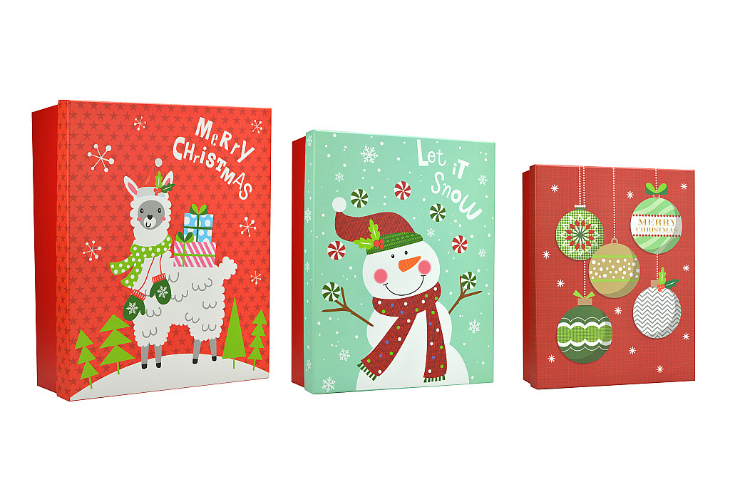 Odlište se od ostatních a darujte letos dětem dárky v krásném balení. Sada 3 ks dárkových krabic z tvrdého papíru s víkem. Krabice jsou kvalitně do detailu zpracované, hezky barevné. Uvnitř mají bílou barvu. Přibližné rozměry krabic: 35,5 x 29 x 10,5 cm 33,5 x 26,5 x 9,5 cm 30,5 x 24 x 8,5 cmVíce