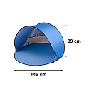 Skládací plážový stan v modré barvě vám poskytne klid a trochu soukromí. Velká plocha stanu poskytuje příjemný stín během slunečných dnů a ochranu před poryvy studeného větru.