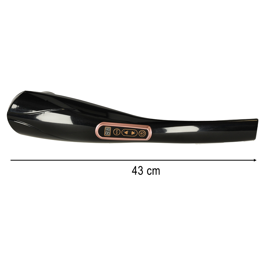 Dlouhá rukojeť zajišťuje pevný úchop zařízení, díky čemuž se ruka neunaví tak rychle ani při dlouhodobé masáži. Navíc délka rukojeti umožňuje samostatnou masáž obtížně dostupných míst, jako jsou záda.