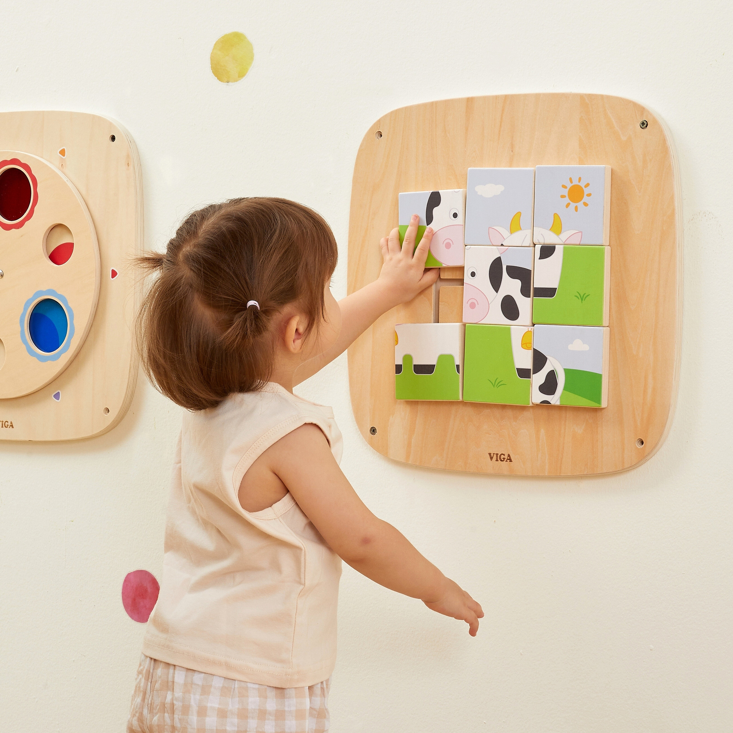 VIGA Dřevěná Manipulační Sensorická Tabule Obrázkové Puzzle