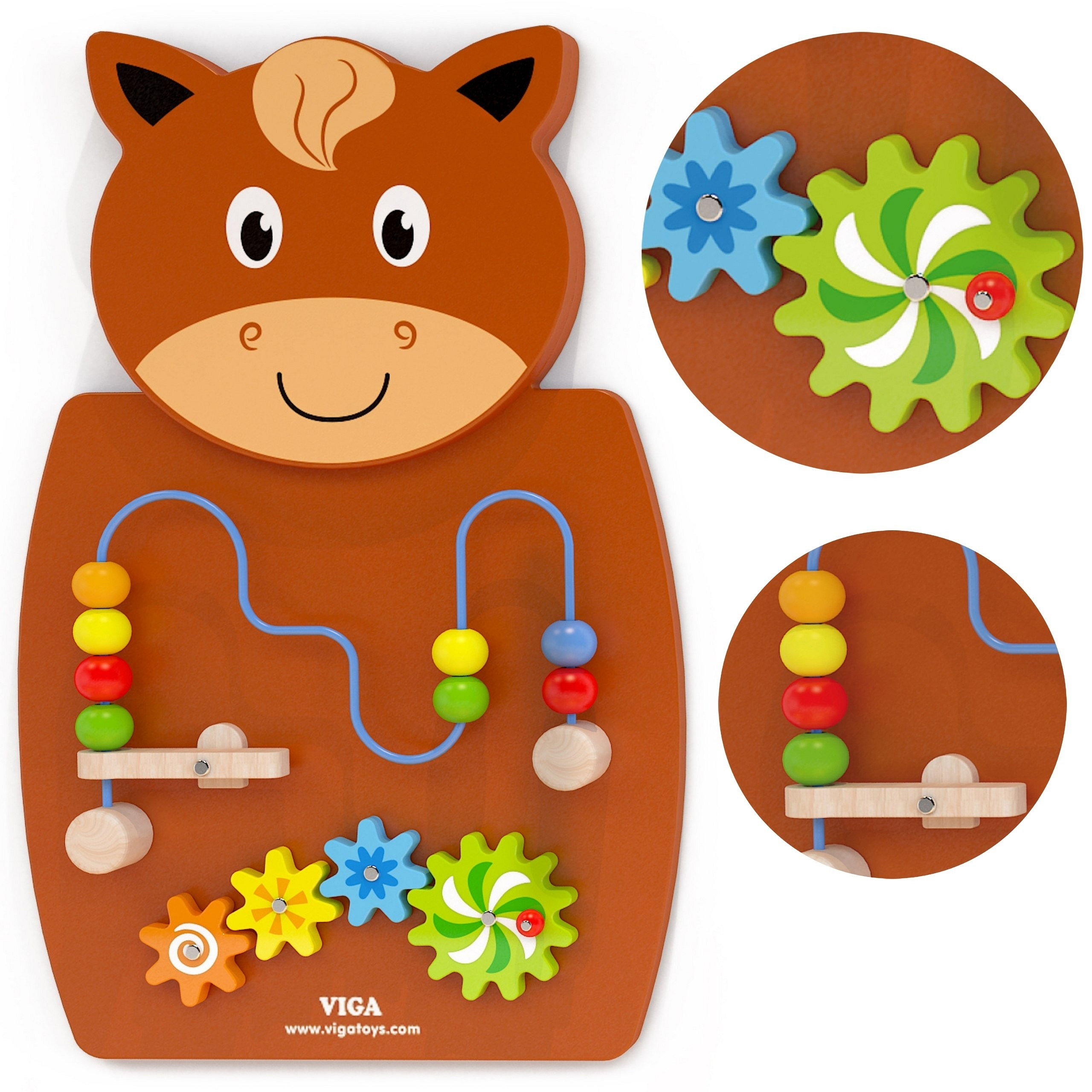 Drewniana tablica manipulacyjna Sensoryczna Konik od marki Viga Toys, to kolorowa tablica manipulacyjna, która zamienia zabawę w fascynującą naukę przez dotyk i ruch! Maluchy uwielbiają przesuwać koraliki po pętli i obserwować, jak obracają się koła zębate, co przyciąga ich uwagę i angażuje w zabawę. Interaktywne elementy zachęcają dzieci do eksplorowania, ćwiczenia zręczności palców i poznawania kolorów oraz kształtów. To idealna zabawka Montessori, która wspiera rozwój zdolności manualnych i logicznego myślenia. Wykonana z trwałego, lakierowanego drewna z bezpiecznymi farbami, zapewnia długie godziny kreatywnej zabawy dla dziecka i spokoju dla rodzica.