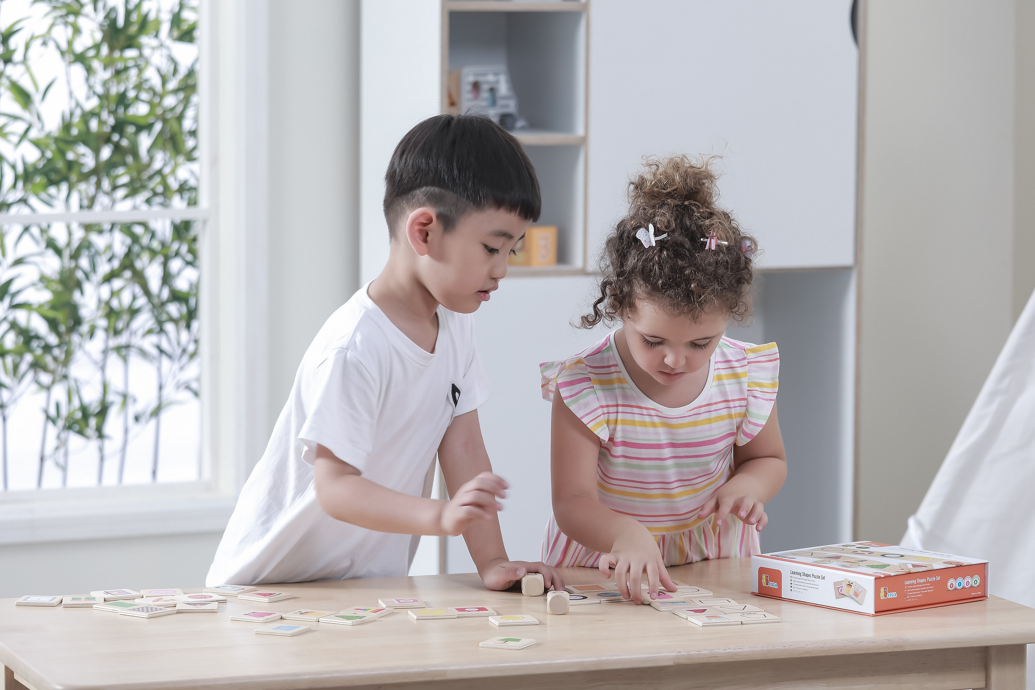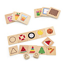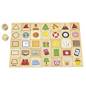 Drewniana układanka do nauki i sortowania kształtów. Zadaniem dziecka jest przyporządkować przedmioty do wybranych kształtów. Obrazki przedstawiają wiele przedmiotów codziennego użytku tj. doniczka, kawałek pizzy. Dziecko spoglądając na doniczkę ujrzy w niej kształt trapezu, natomiast kawałek pizzy będzie trójkątem. Całość wykonana jest z drewna i pomalowana nietoksycznymi farbami. W dołączonej instrukcji propozycje wariantów dla jednej osoby jak i kilku osób oraz w zróżnicowanym poziomie trudności.