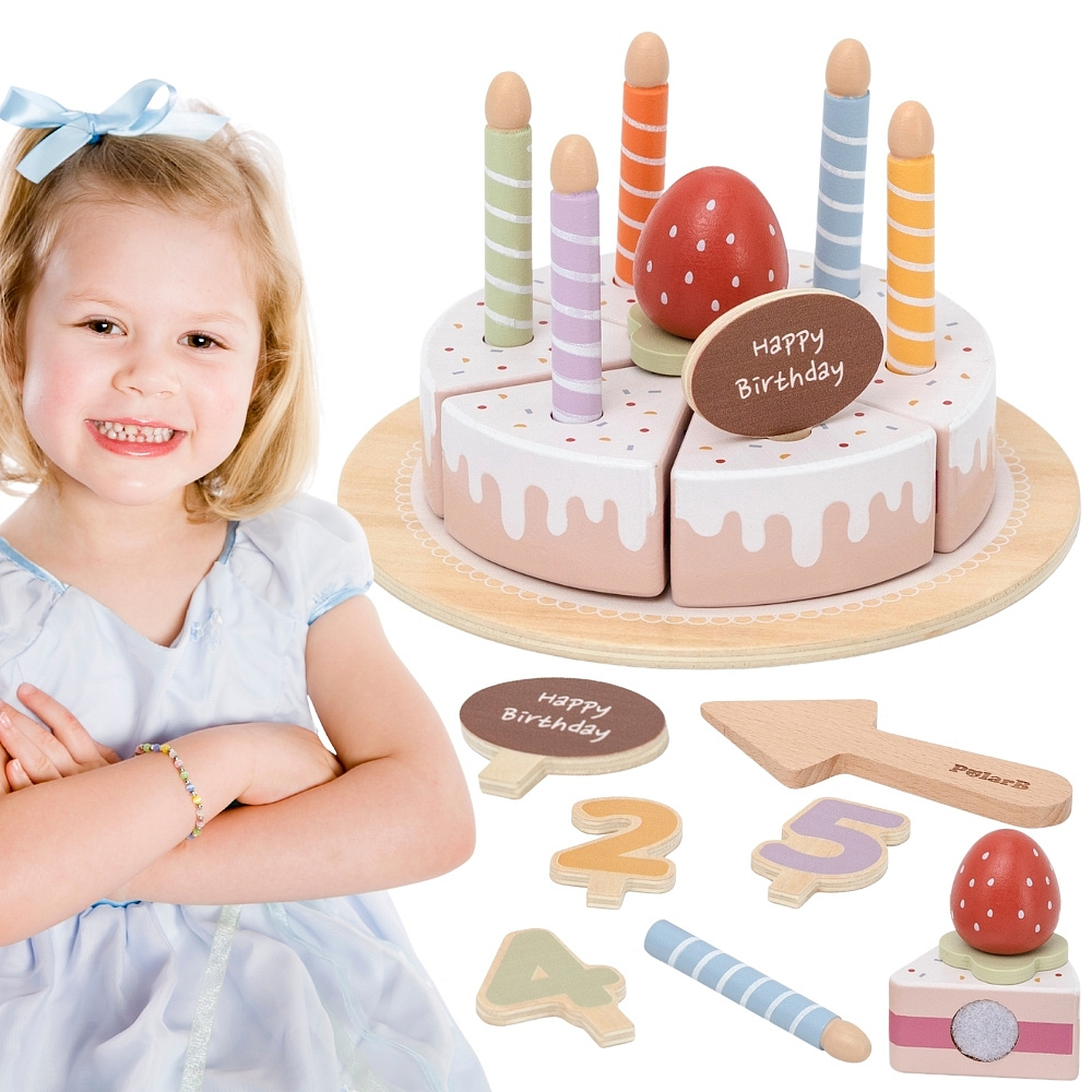 Drewniany Tort Urodzinowy od marki Viga to wyjątkowy zestaw, który sprawi, że każda zabawa w przyjęcie stanie się niezapomniana! Składa się z realistycznych elementów takich jak kawałki ciasta, świeczki i dekoracje, które można dowolnie układać. Dzięki rzepom maluch może łatwo kroić i łączyć kawałki, ucząc się współpracy i dzielenia podczas wspólnej zabawy. To idealny dodatek do zabawy w kuchnię, przyjęcia urodzinowe i wspólne spotkania z rodziną czy przyjaciółmi.
