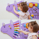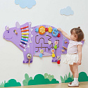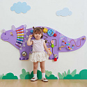 - - Drewniana, sensoryczno-manipulacyjna tablica w kształcie Triceratopsa, przyciągająca wzrok i zachęcająca do zabawy