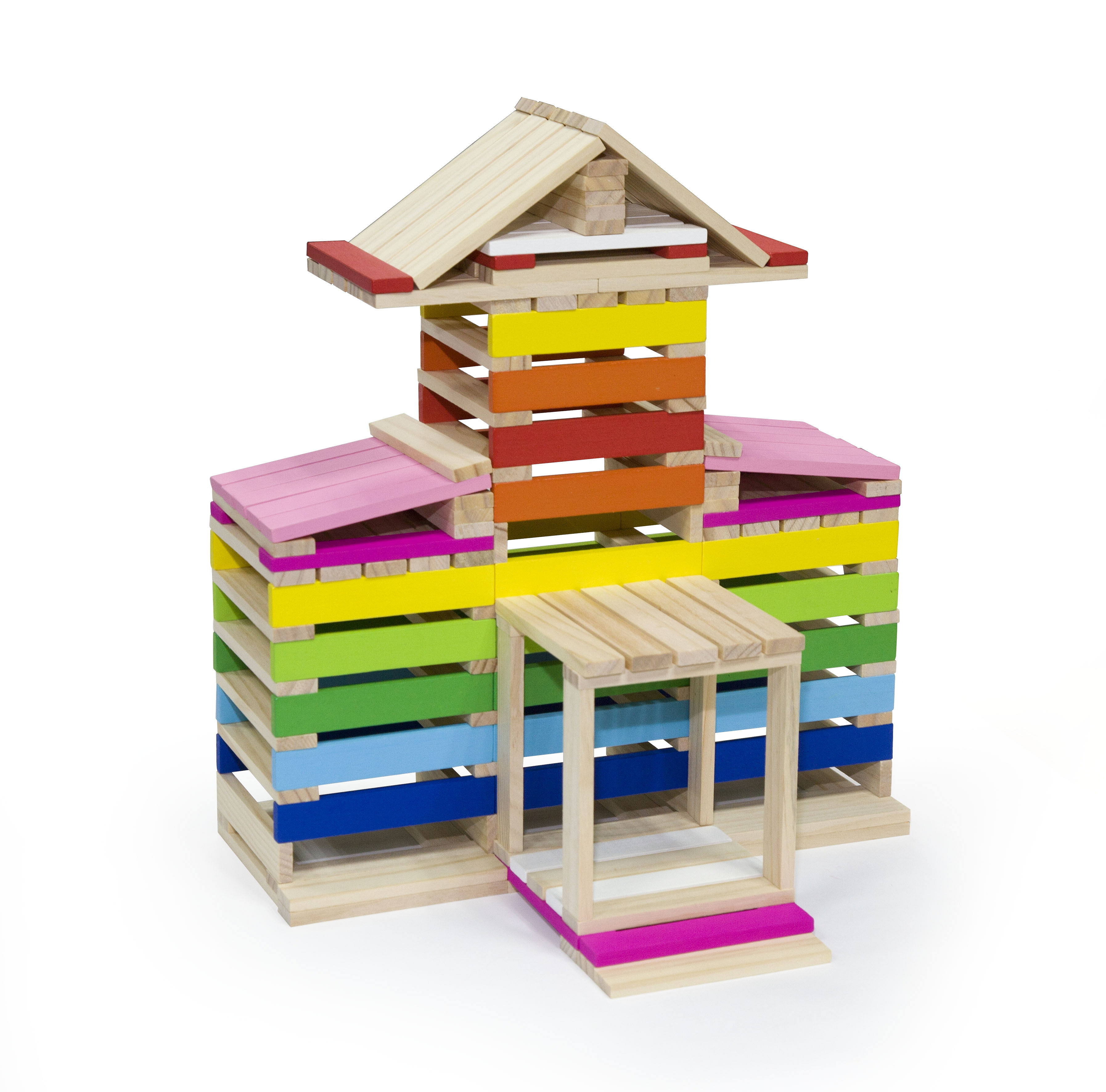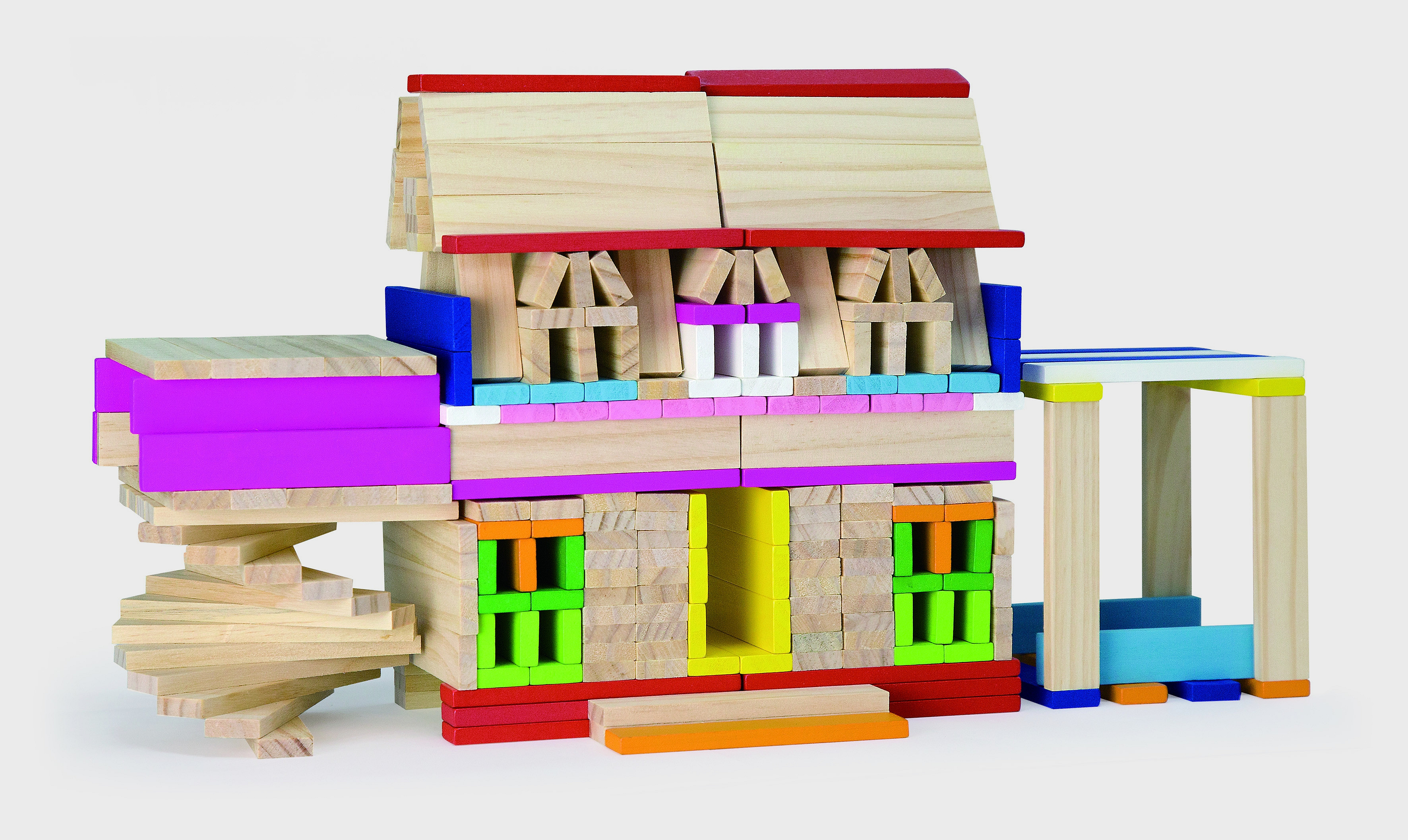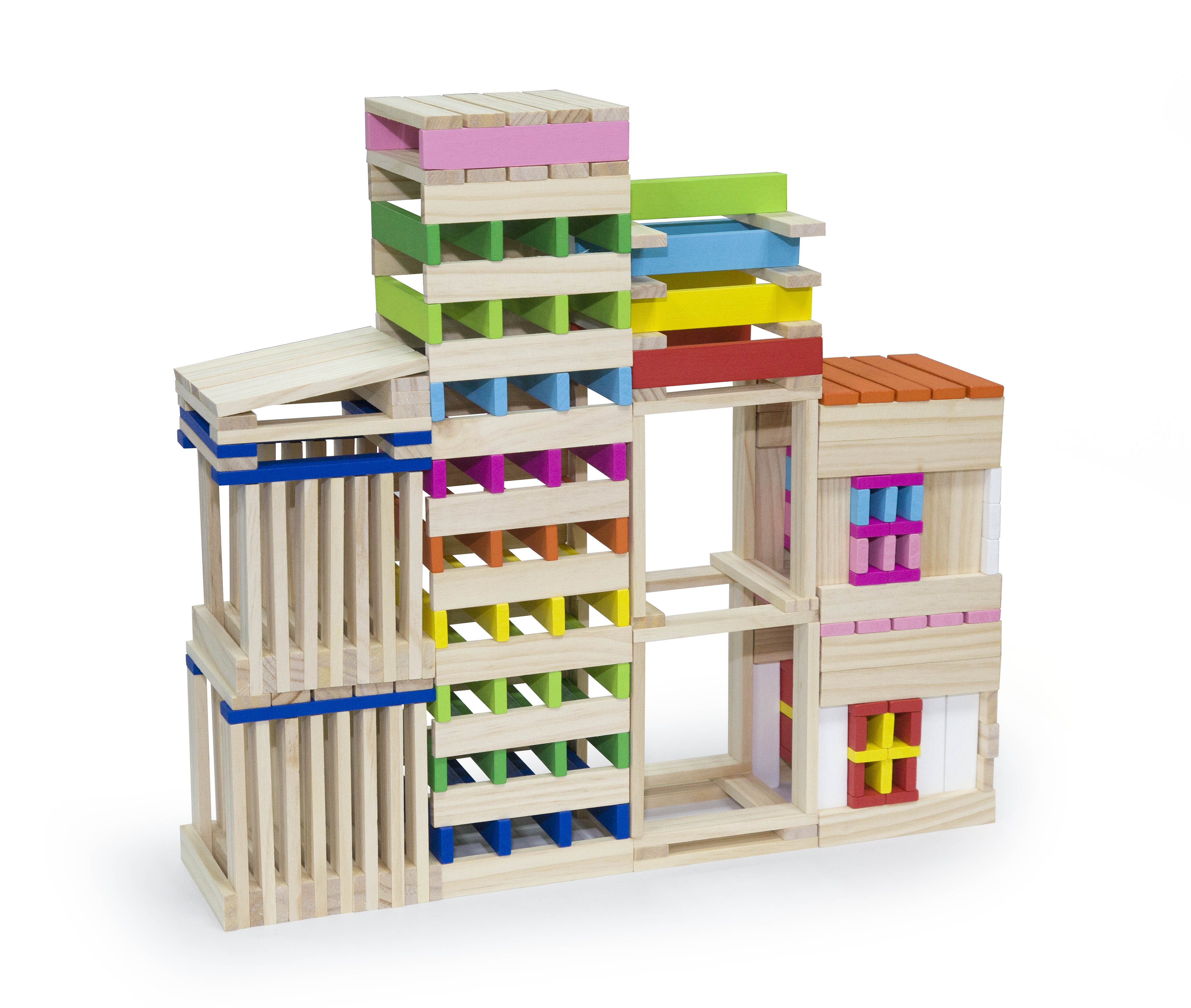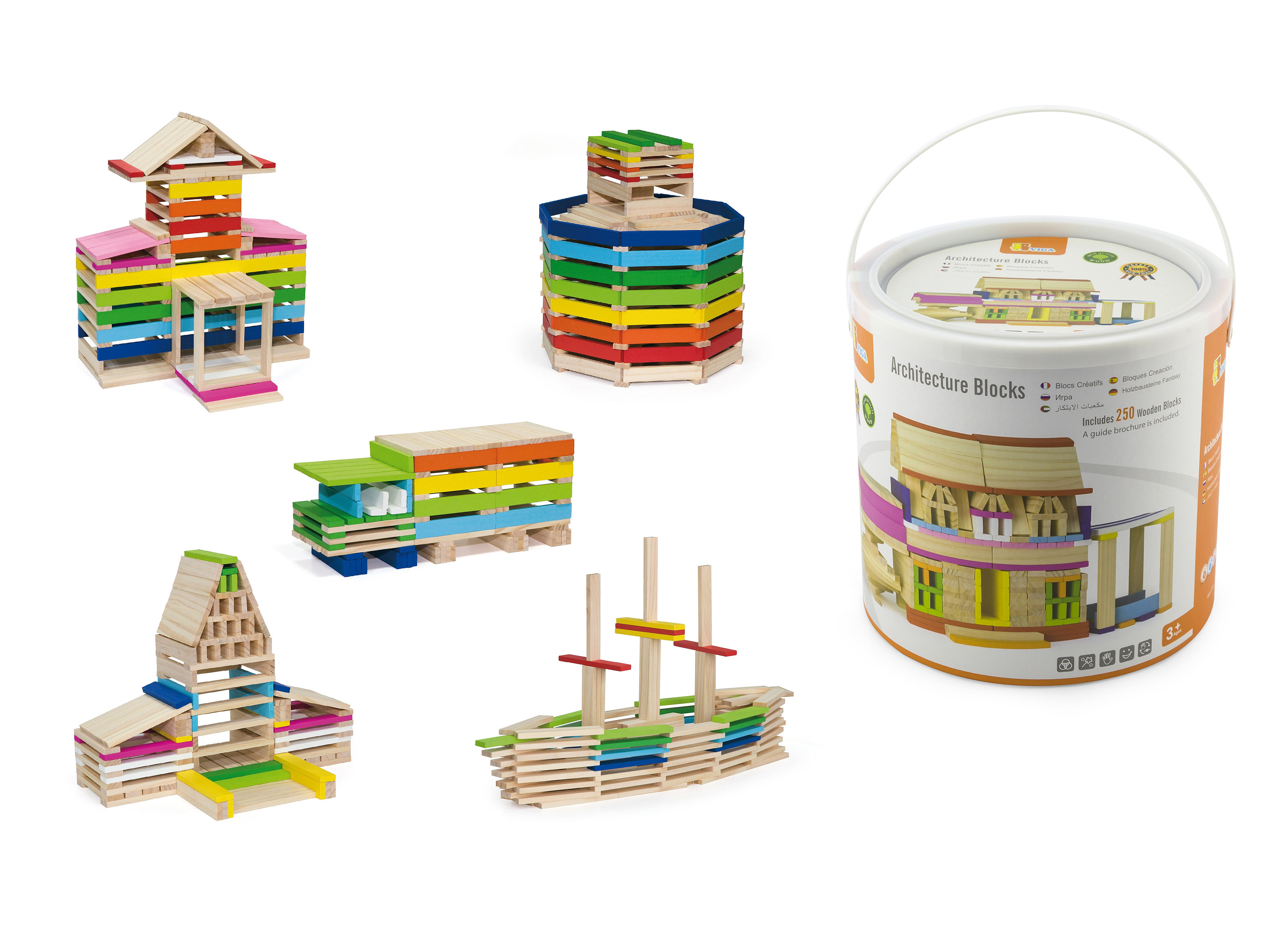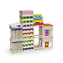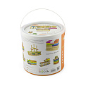 Zestaw zawiera aż 250 elementów, z których można różne wersje kolorowych budynków, a pomoże w tym książeczka z instrukcjami, która dołączona jest do zestawu.