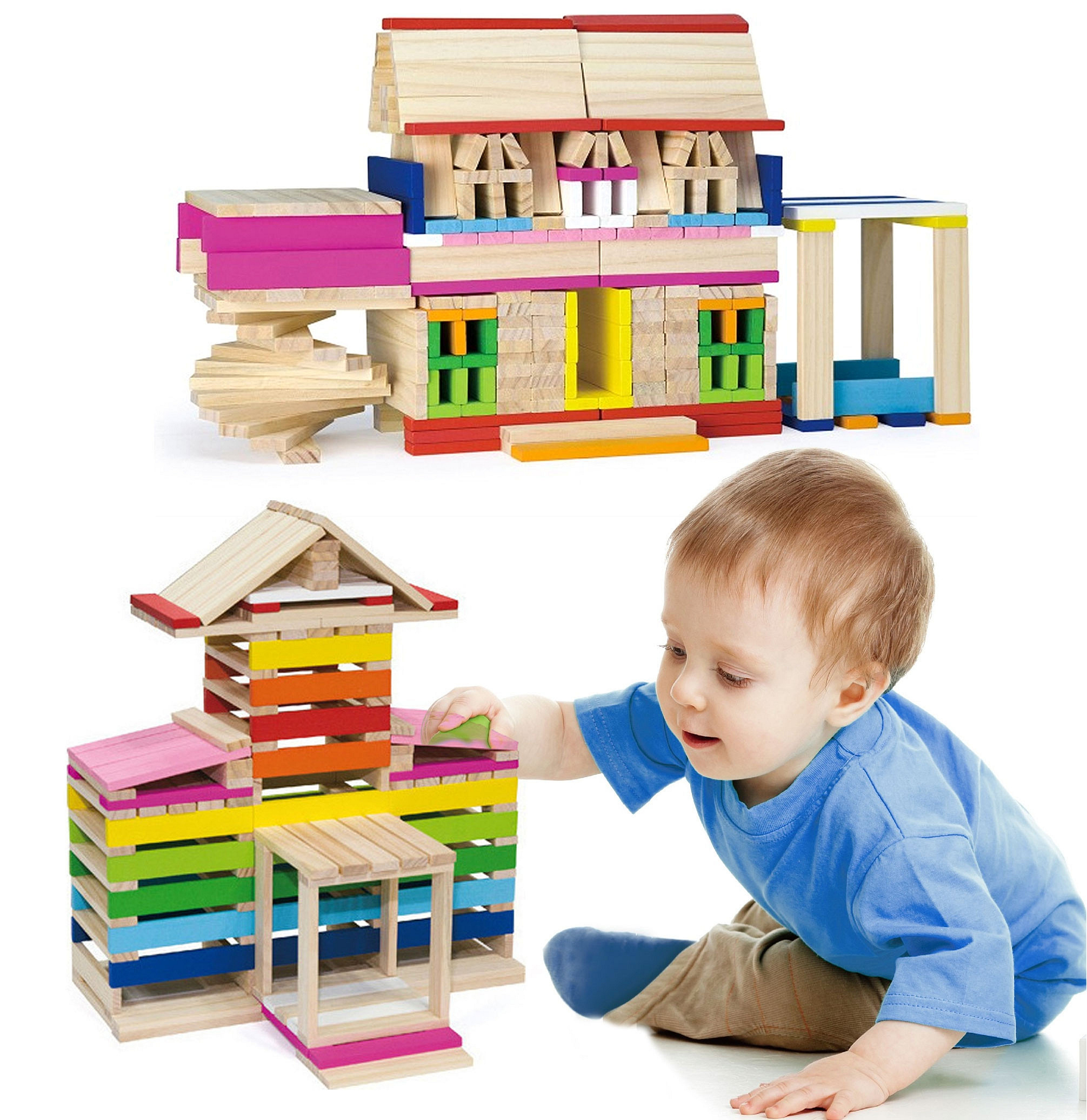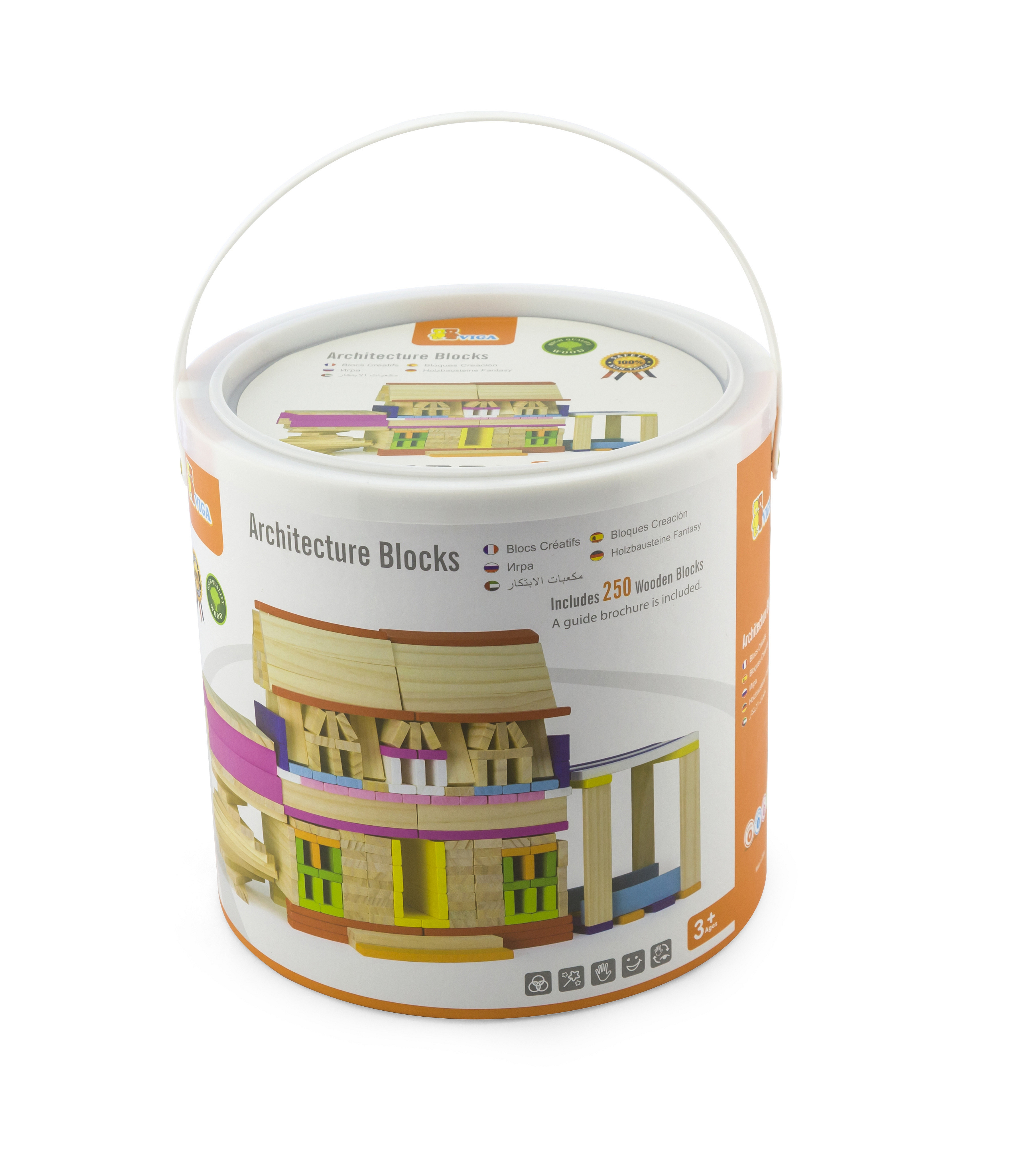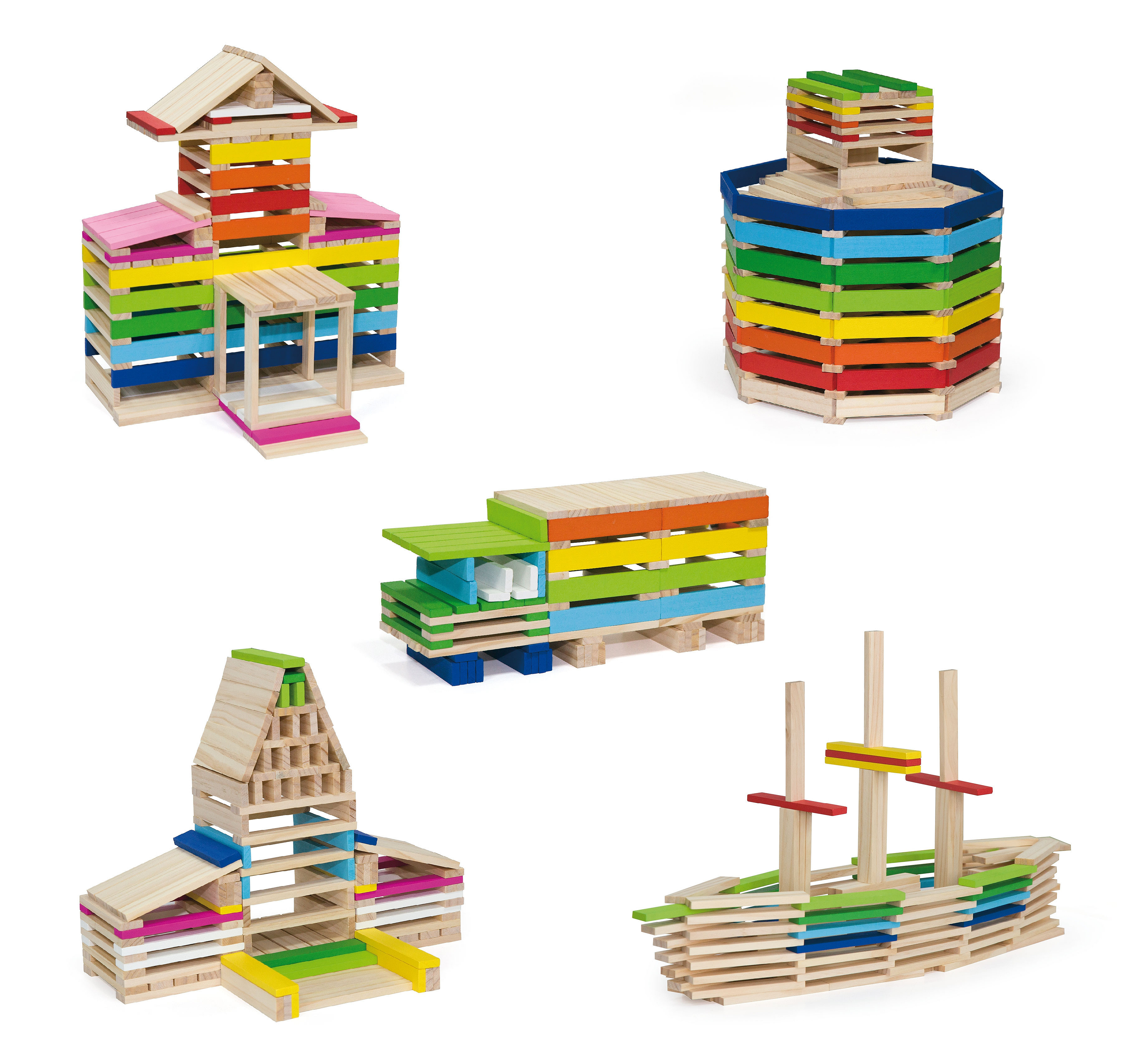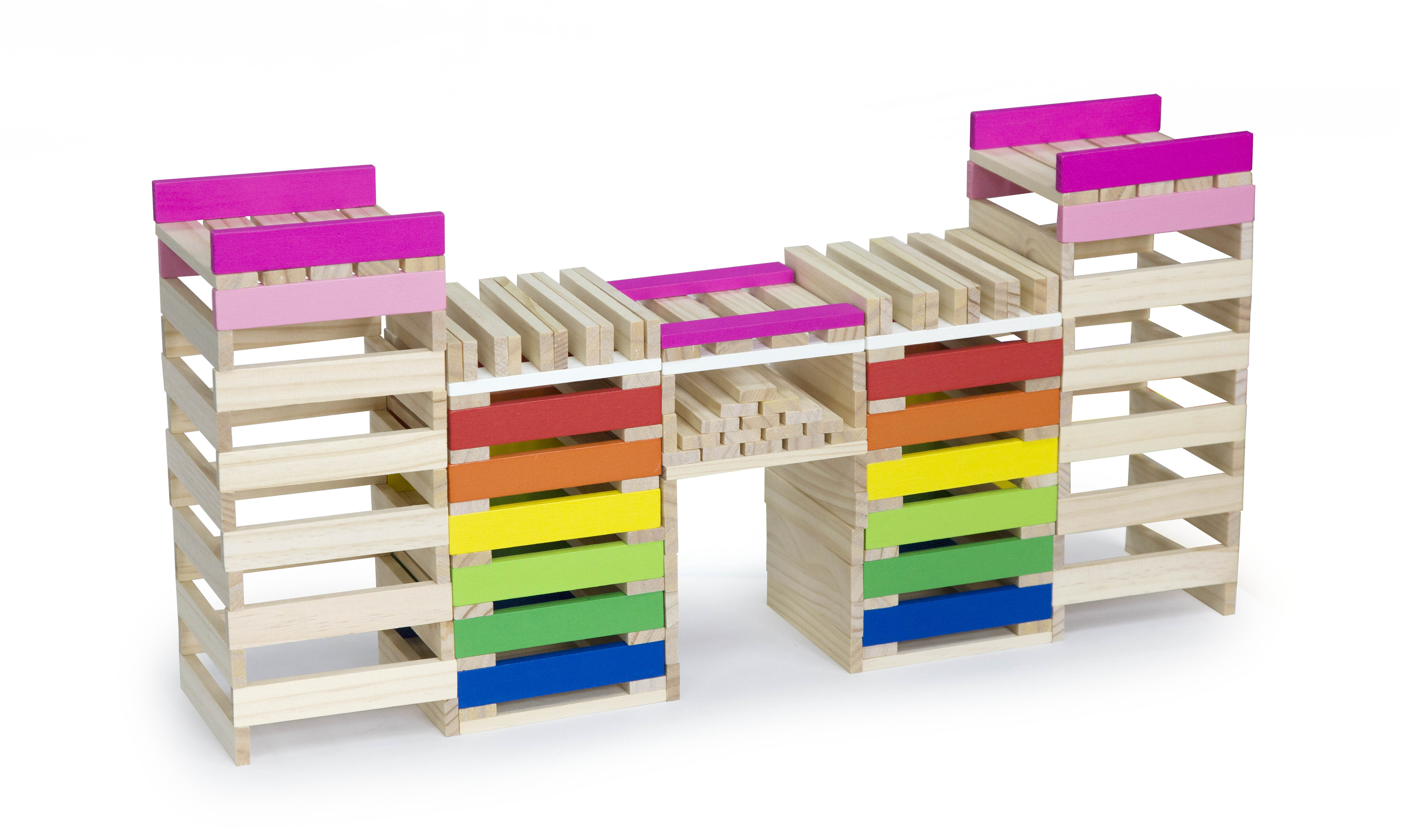 Zestaw zawiera aż 250 elementów, z których można różne wersje kolorowych budynków, a pomoże w tym książeczka z instrukcjami, która dołączona jest do zestawu.